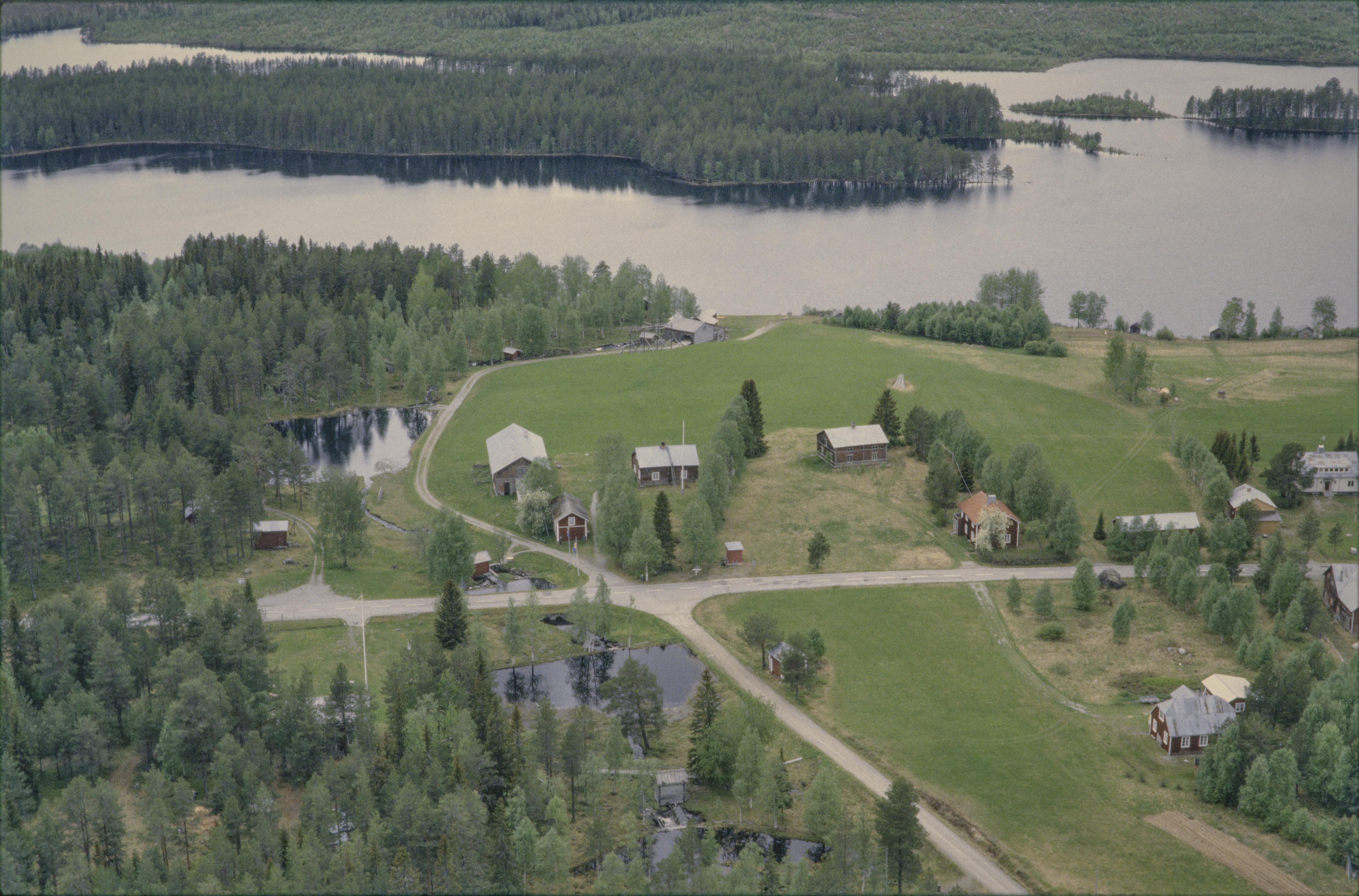 Beskrivning: Byn Torvsjö (Derhvedslaedtie) vid Torvsjön i Torvsjöåns dalgång. I bildens mitt Torvsjö kvarnar RAÄnr Åsele 20:1 vid Kvarnbäckens utlopp i Torvsjön. Bilden är tagen mot (väderstreck): SV