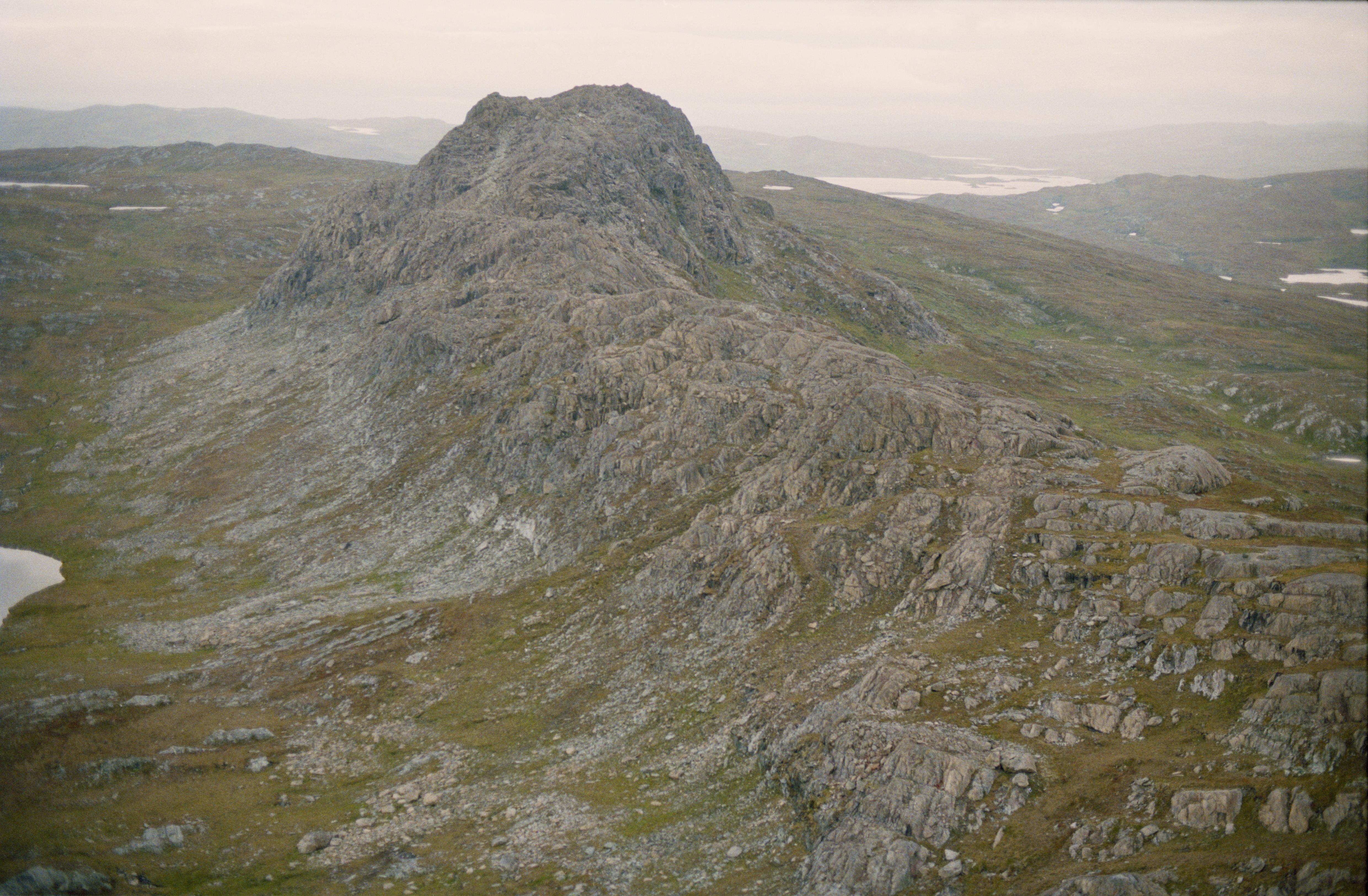 Beskrivning: Samisk kulturmiljö på och vid fjället Atoklimpen (Aatoeklibpie / Atoklinten), väster om Atofjället. På och vid Atoklimpens topp finns flera gruvhål RAÄnr Tärna 1064:1-2, offerplats Tärna 667:1 m.m. Området Atoklimpen är kulturreservat sen 2005. Bilden är tagen mot (väderstreck): Ö