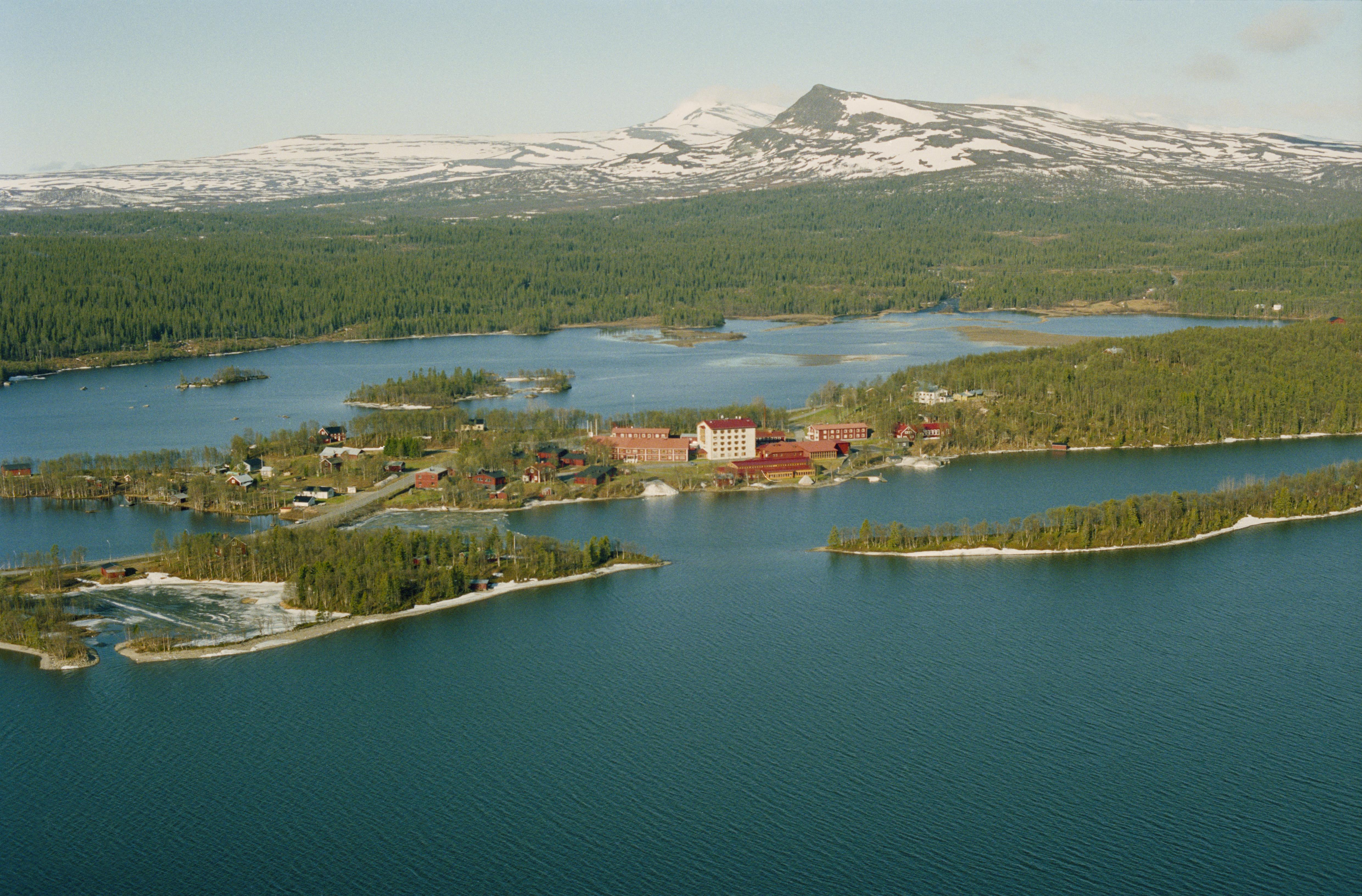 Beskrivning: Östra delen av Saxnäs by (Saadteskenjuana) mellan Stensjön (över bildens mitt) och Kultsjön (Gåaltoe). På udden Kina till vänster om bildens mitt boplats RAÄnr Vilhelmina 108:1 och 1007:1. På udden Japan till höger fyndplats Vilhelmina 1013:1. Bilden är tagen mot (väderstreck): SV