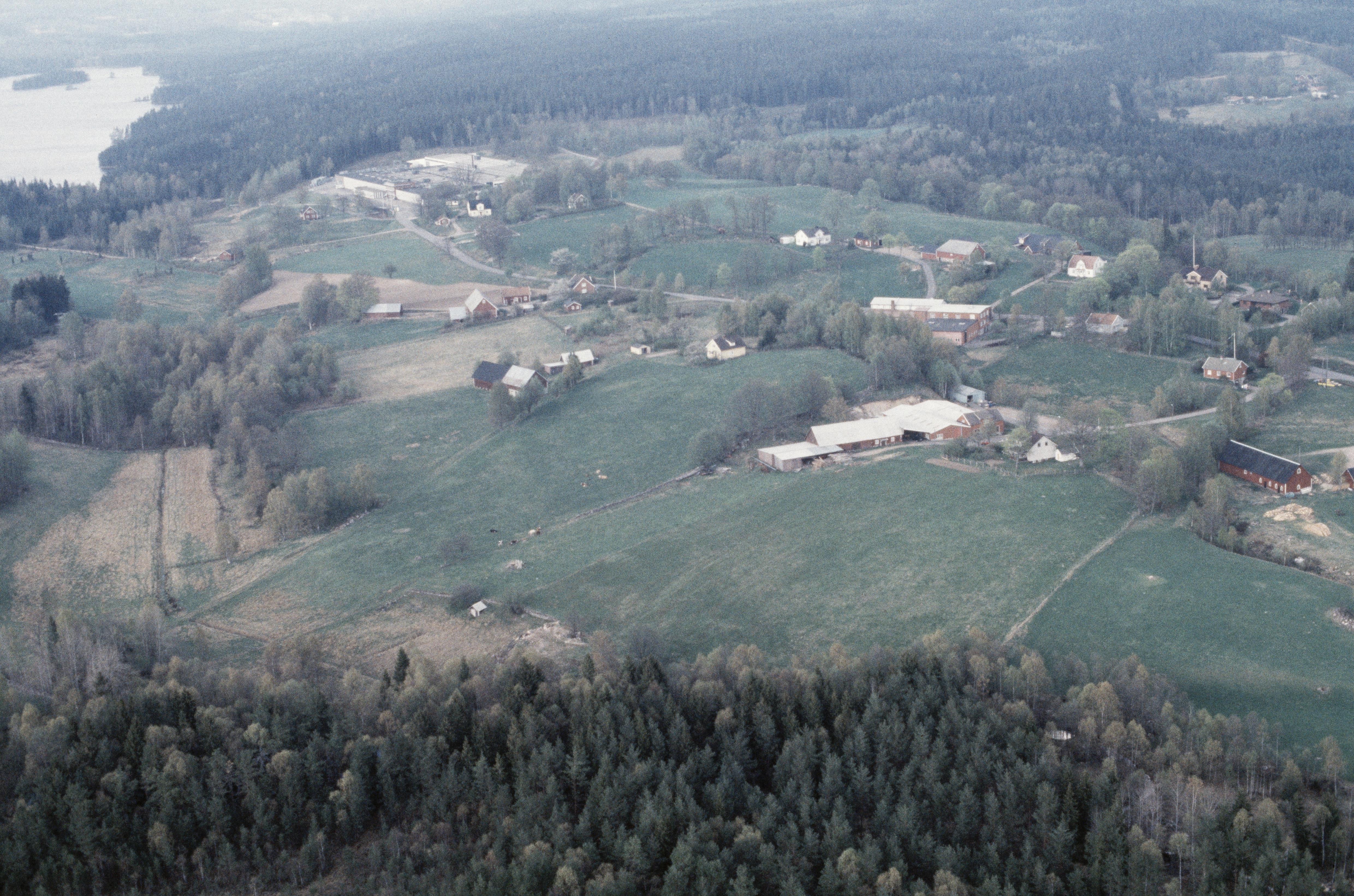 Beskrivning: Jordbruks- och industriorten Tyngel. I bildens övre del till vänster Hästhultasjön. Bilden är tagen mot (väderstreck): NO