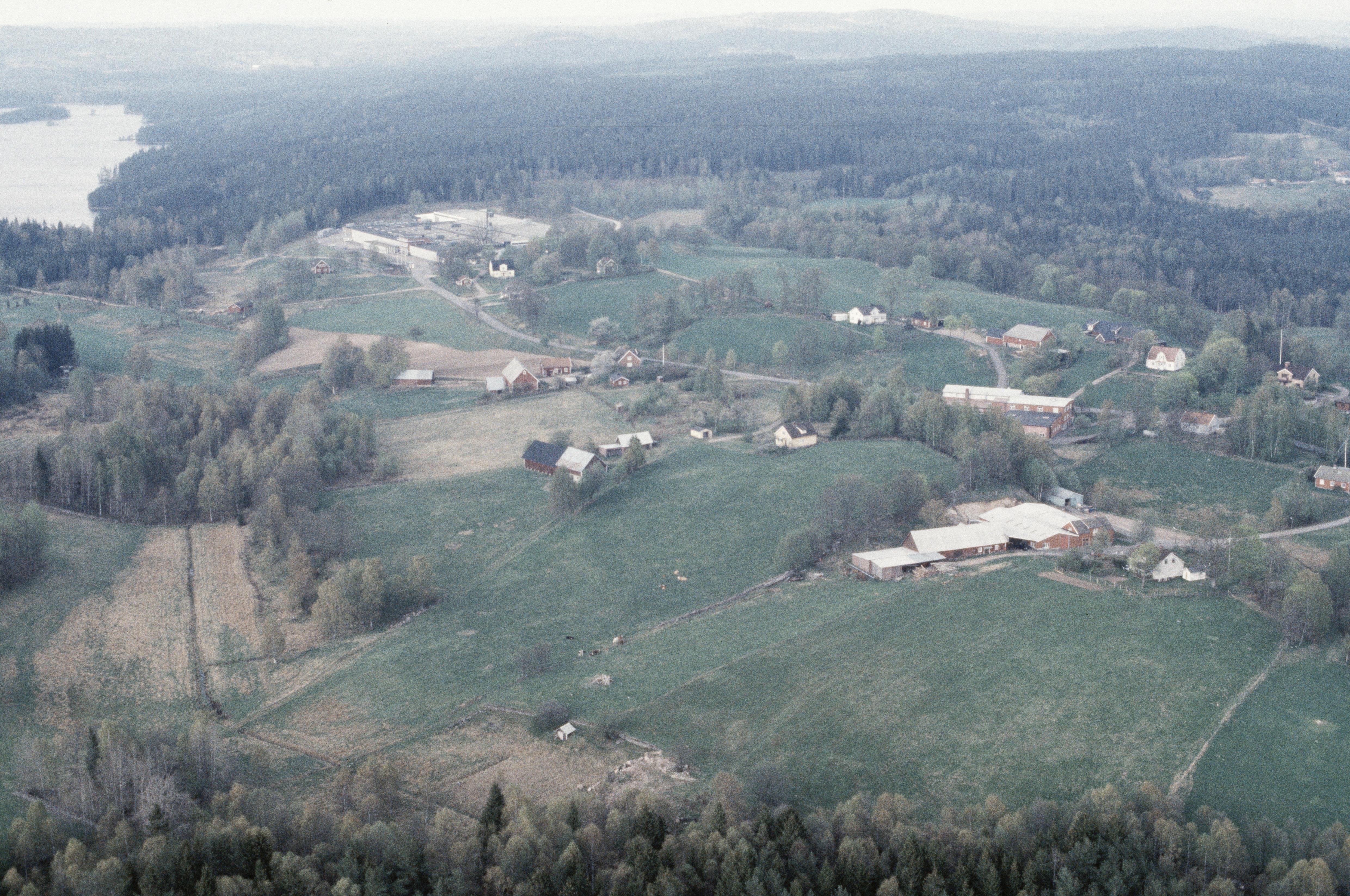 Beskrivning: Jordbruks- och industriorten Tyngel. I bildens övre del till vänster Hästhultasjön. Bilden är tagen mot (väderstreck): NO
