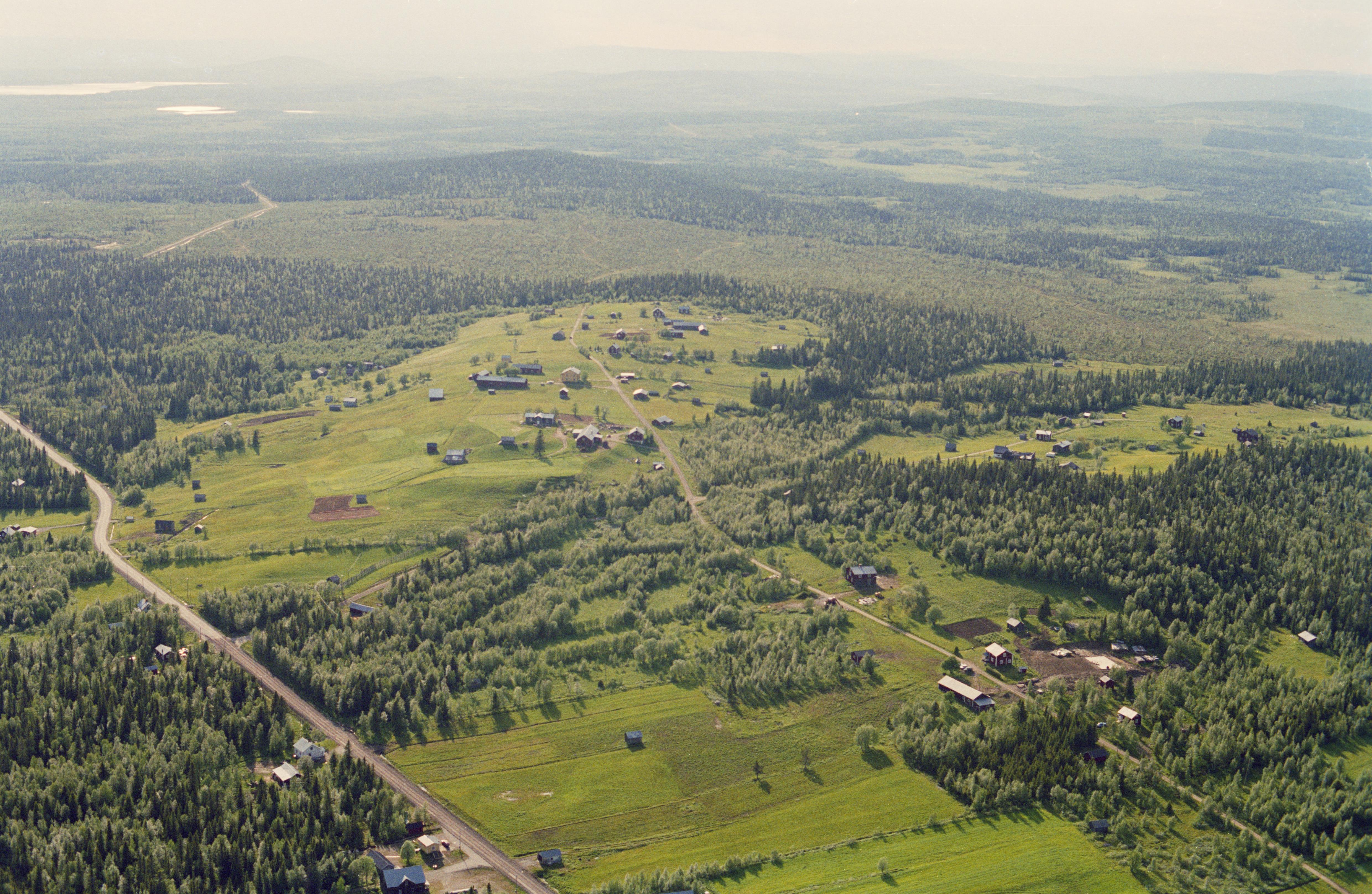 Beskrivning: Risträsks by. Till höger om bildens mitt Risträskskogens naturreservat. Bilden är tagen mot (väderstreck): VNV