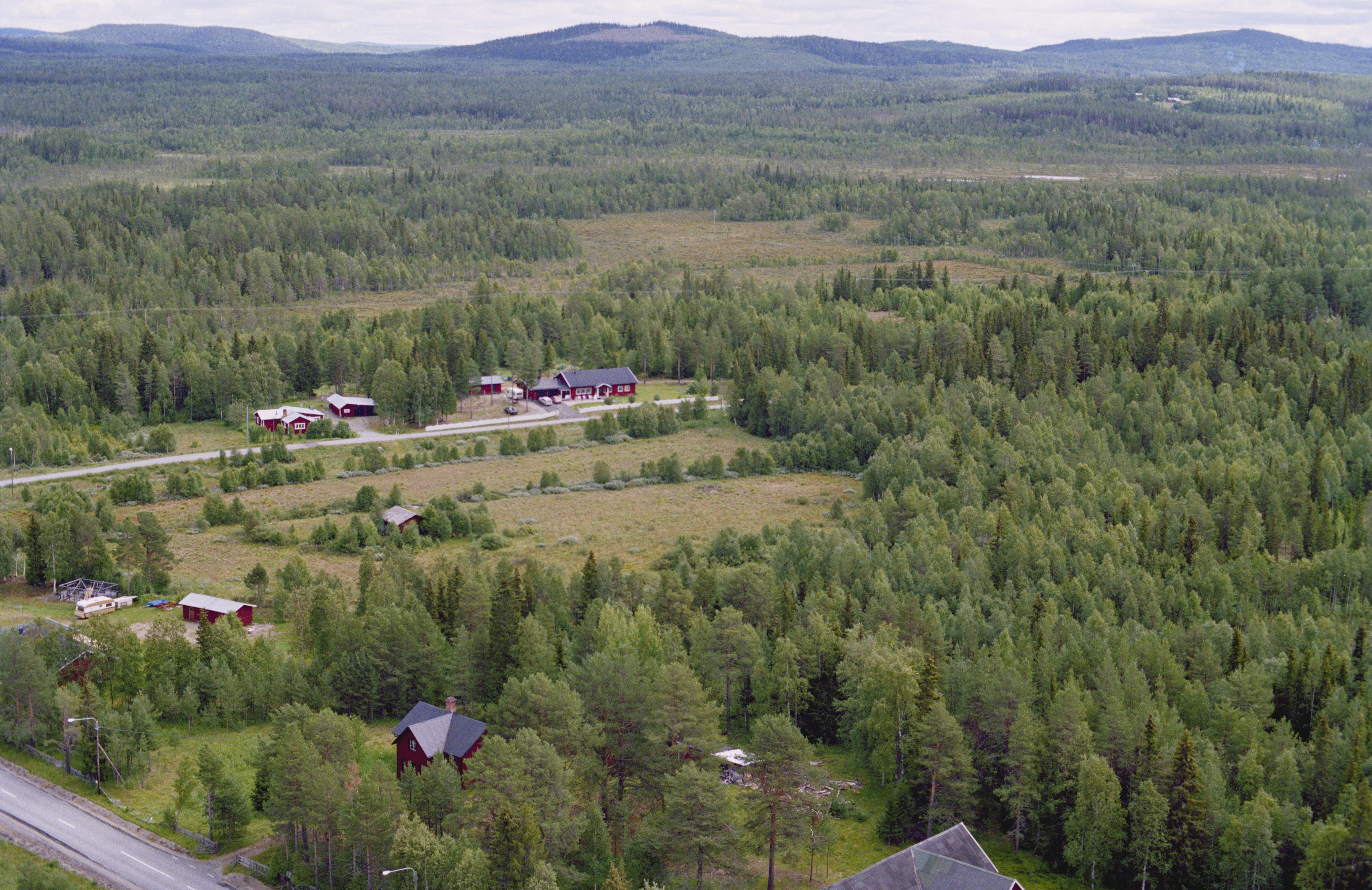 Beskrivning: Bäsksele by (Beetske) i Vojmåns dalgång. I bildens nedre del områdena vid vägkorsningen nordöst om bron. Bilden är tagen mot (väderstreck): Ö