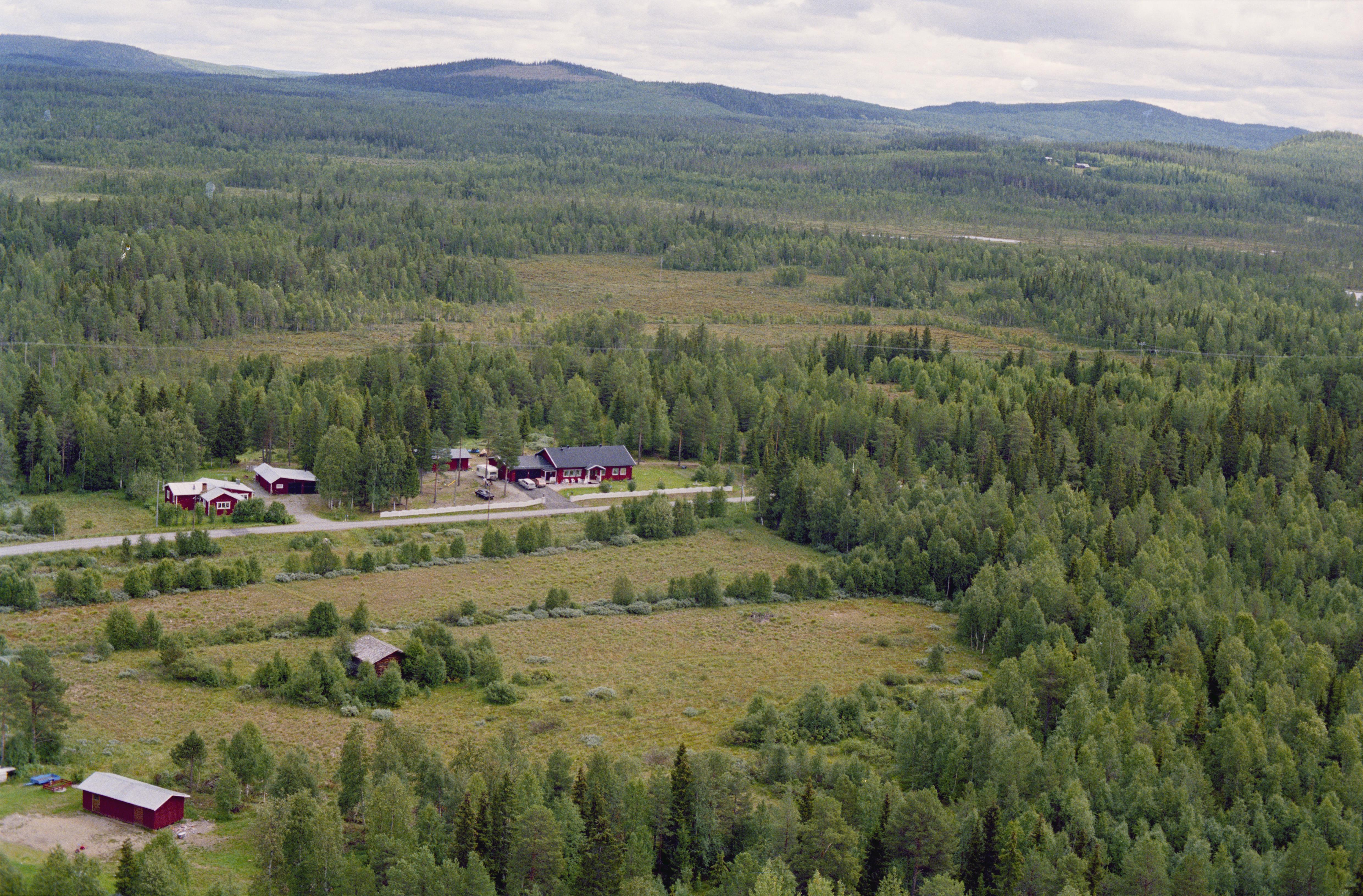 Beskrivning: Bäsksele by (Beetske) i Vojmåns dalgång. I bildens nedre del områdena vid vägkorsningen nordöst om bron. Bilden är tagen mot (väderstreck): Ö