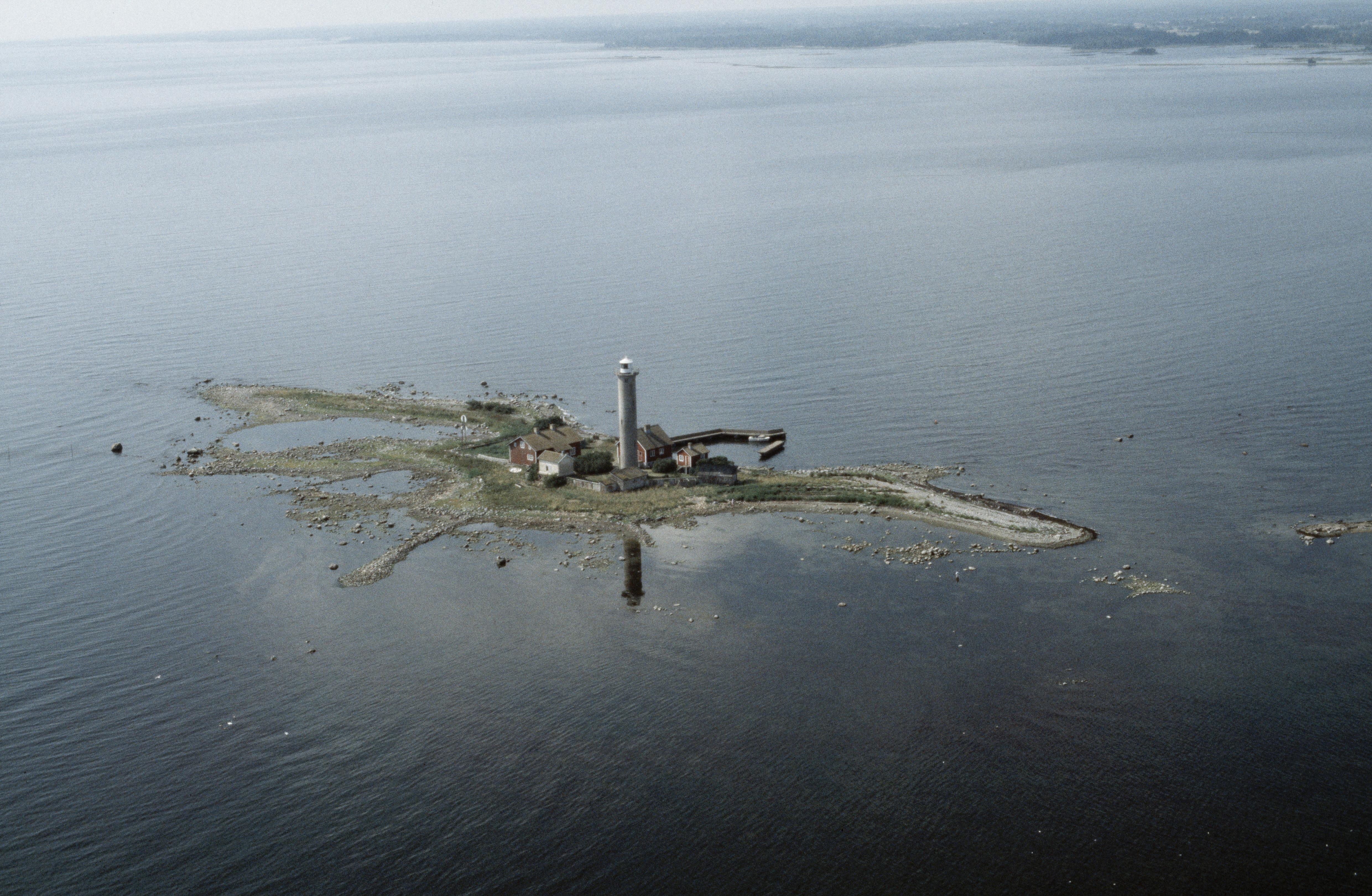 Beskrivning: Garpens fyr på ön Garpen vid Bergkvara. Bilden är tagen mot (väderstreck): SV