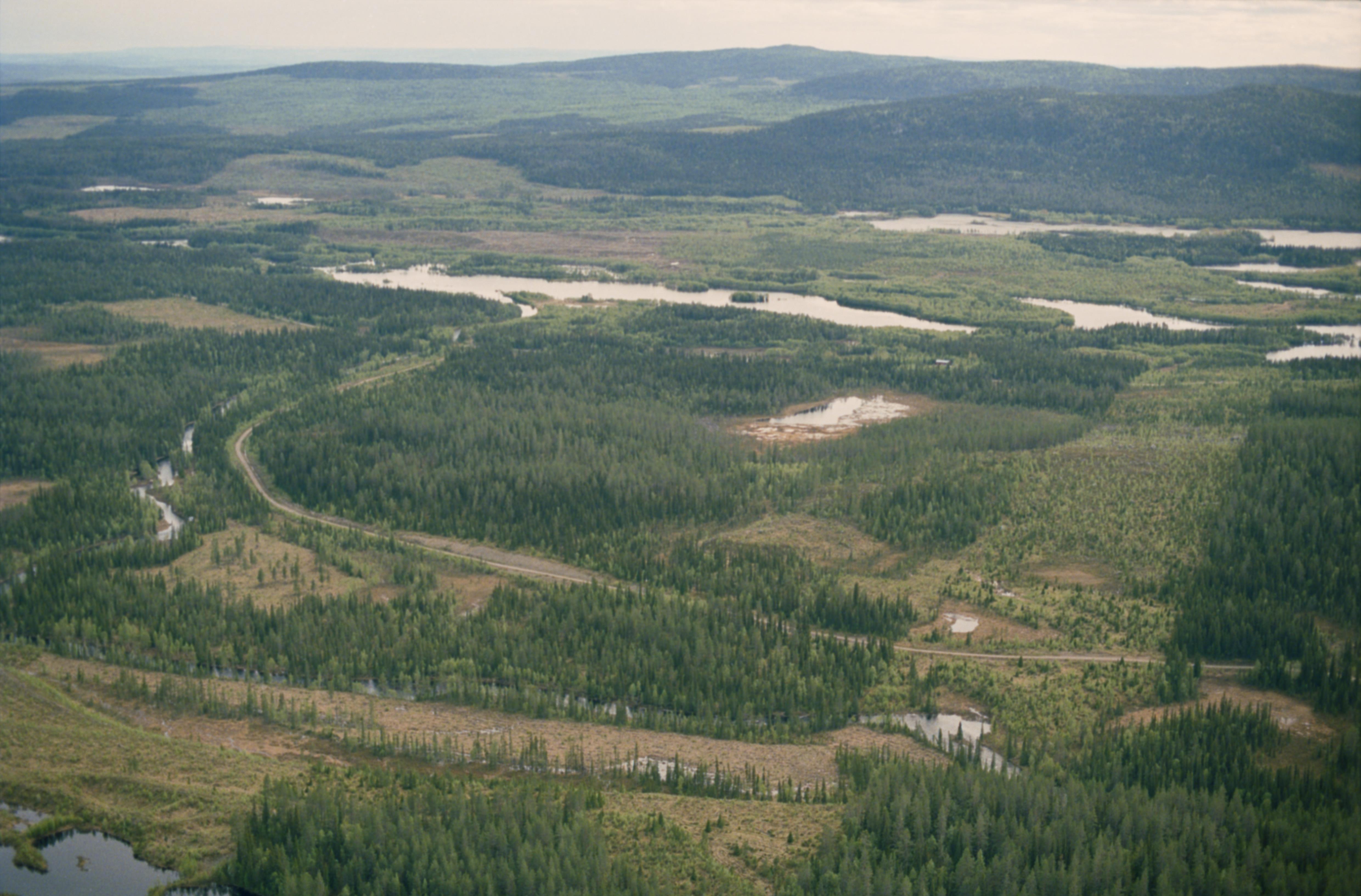 Beskrivning: Fångstmiljö i området mellan Gråtanån och Vojmån i Vojmsjöns sydöstra ände. Område med flera boplatser och fångstgropssystem. Vid tjärnen nere i bildens vänstra hörn fångstgrop RAÄnr Vilhelmina 1203:1. Vid bildens mitt boplats RAÄnr Vilhelmina 568:1 m.fl. Bilden är tagen mot (väderstreck): S