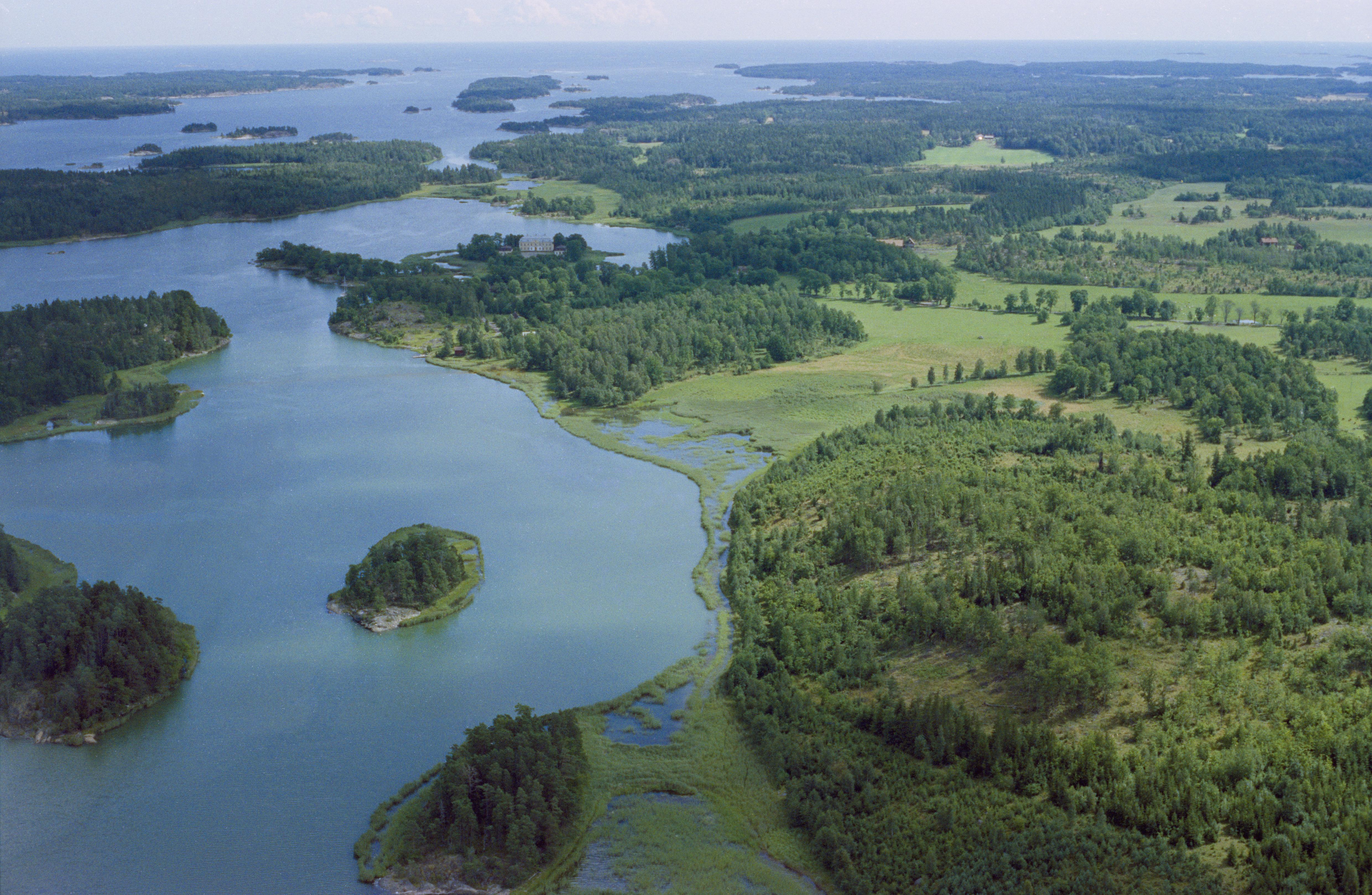 Beskrivning: Uppe till vänster Fågelviks herrgård vid Kattedalsfjärden. Bilden är tagen mot (väderstreck): SO