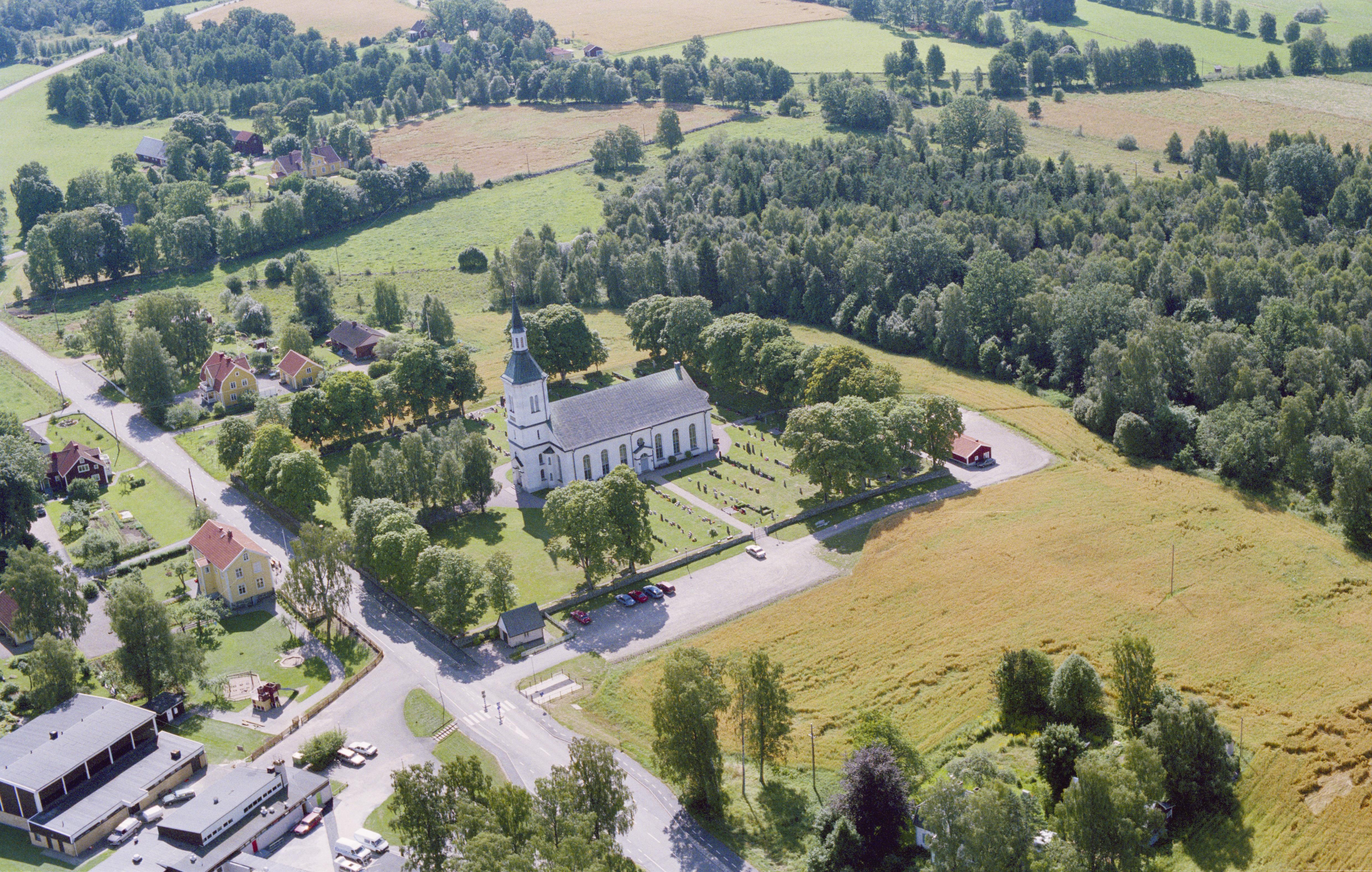 Beskrivning: Vederslövs nya kyrka. I bildens övre del till vänster Vederslövs gamla kyrka. Bilden är tagen mot (väderstreck): SV