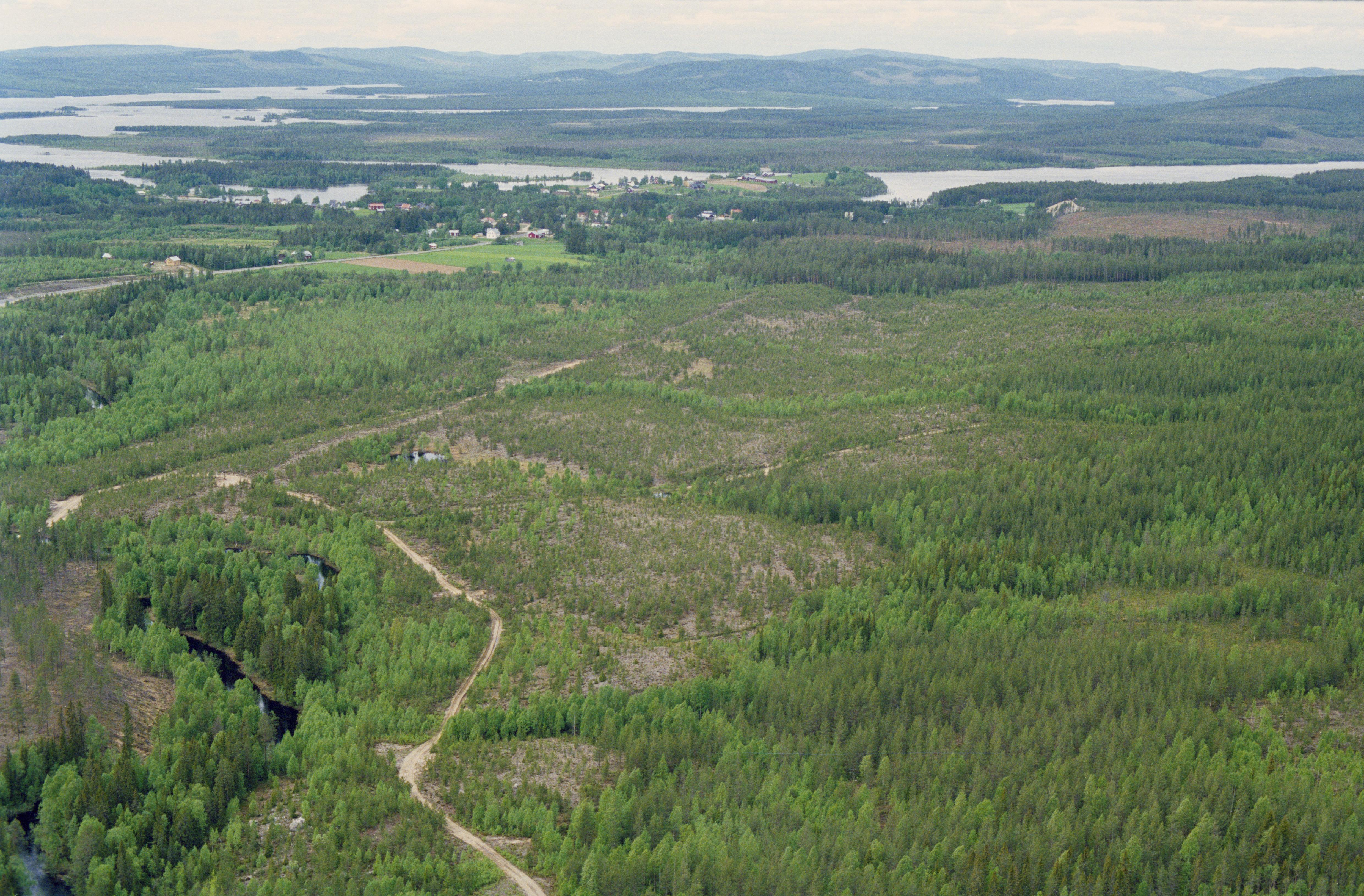Beskrivning: I bildens nedre del området Kvarnstugan vid Stavselån. Vid bildens mitt fångstgrop RAÄnr Åsele 16:1, 17:1 m.fl. I bildens övre kant Ångermanälven mot Hälla by. Bilden är tagen mot (väderstreck): NV