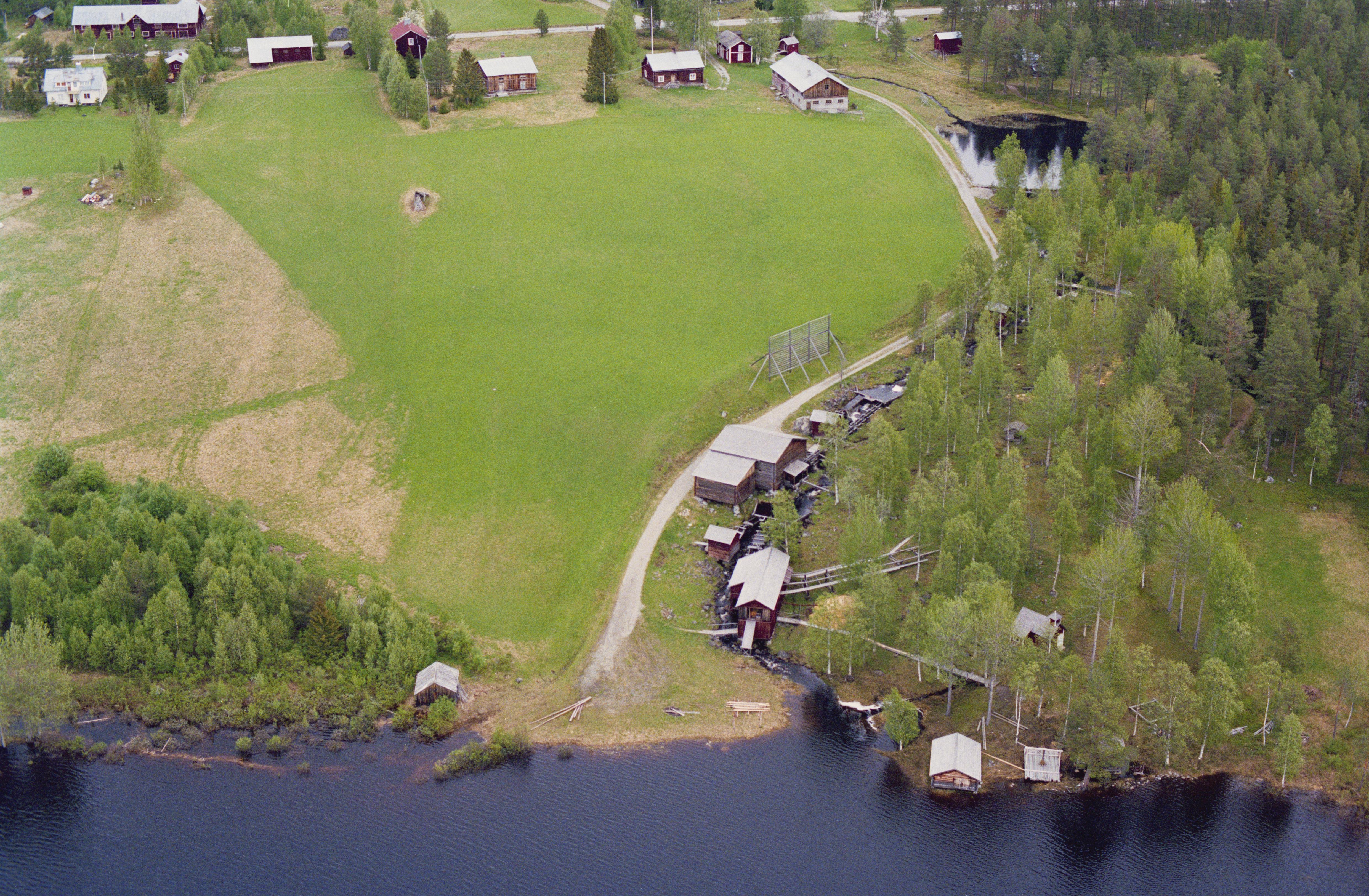 Beskrivning: Byn Torvsjö (Derhvedslaedtie) vid Torvsjön i Torvsjöåns dalgång. Nere till höger Torvsjö kvarnar RAÄnr Åsele 20:1 vid Kvarnbäckens utlopp i Torvsjön. Bilden är tagen mot (väderstreck): NO