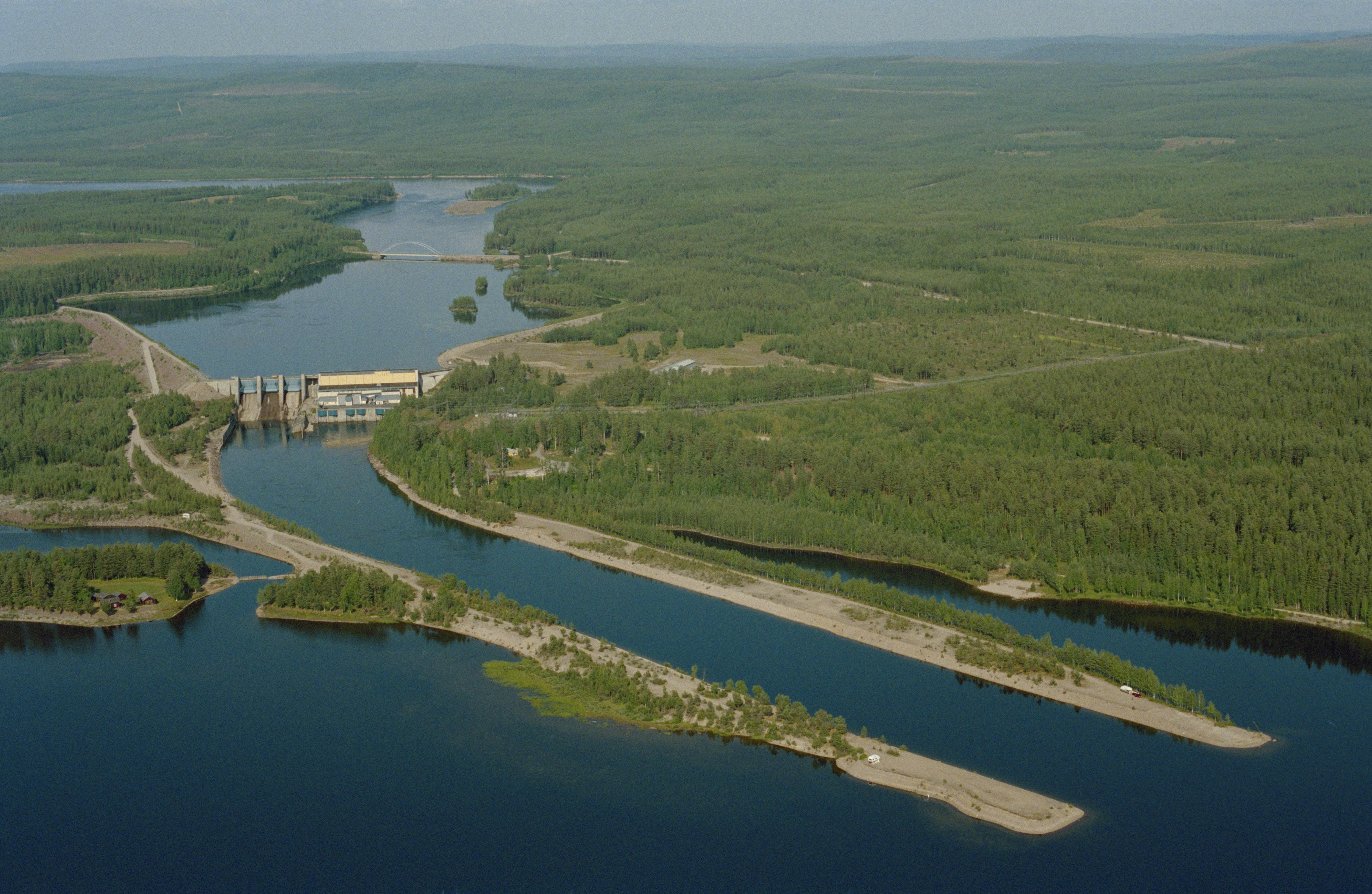 Beskrivning: Luleälven (Julevädno) vid Laxede kraftverk. Byggnadsminnet "Engelska kanalen"RAÄnr Edefors 24:3 längs högra älvstranden över bildens mitt. Områdena Mellanedet, Forsholmen och Överedet i bildens övre del. Bilden är tagen mot (väderstreck): NNO