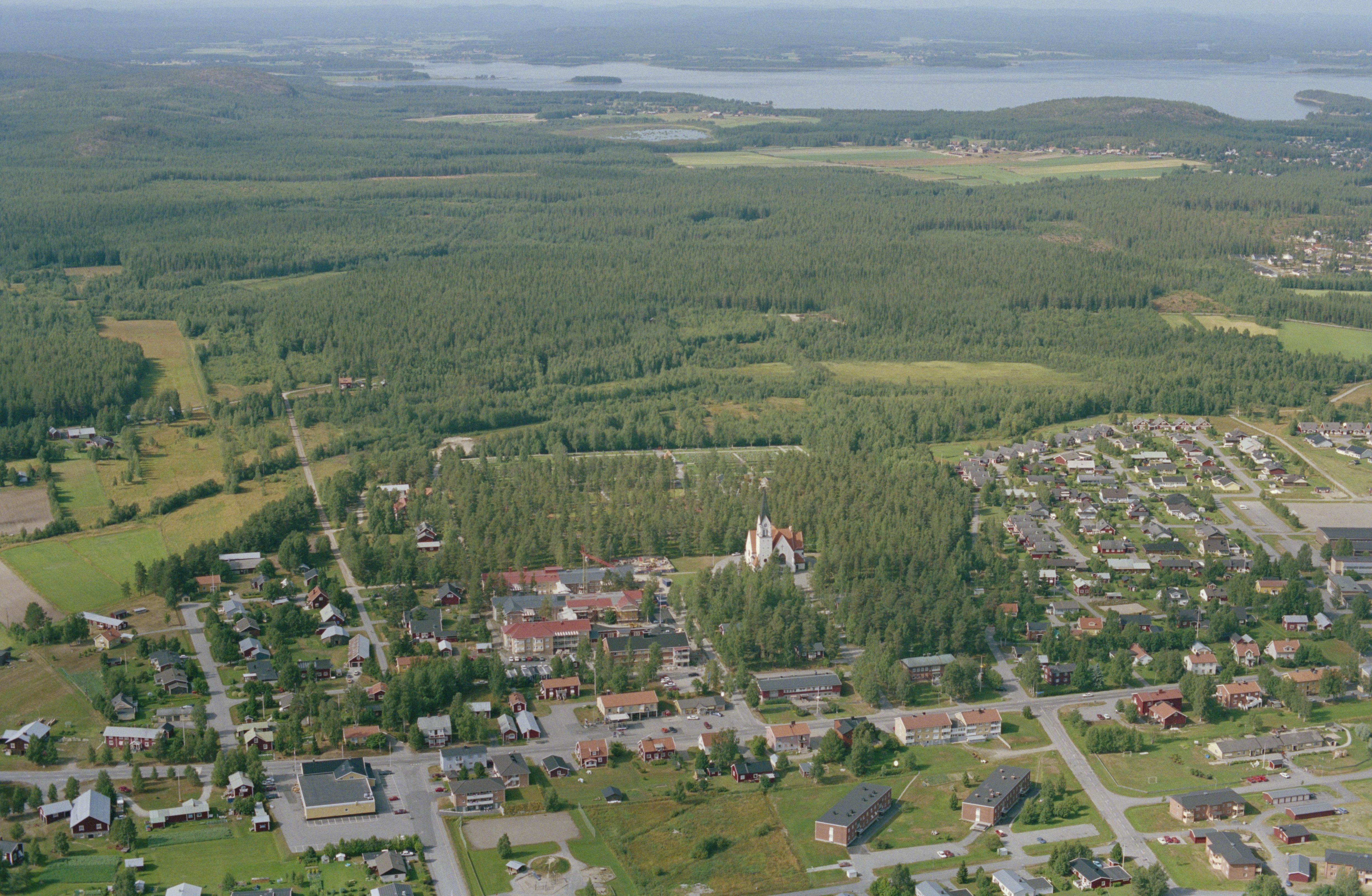 Beskrivning: Hortlax kyrkby. Hortlax kyrka under bildens mitt. Bytomt RAÄnr Hortlax 366:1 nere i vänstra bildhörnet. Bilden är tagen mot (väderstreck): NNV