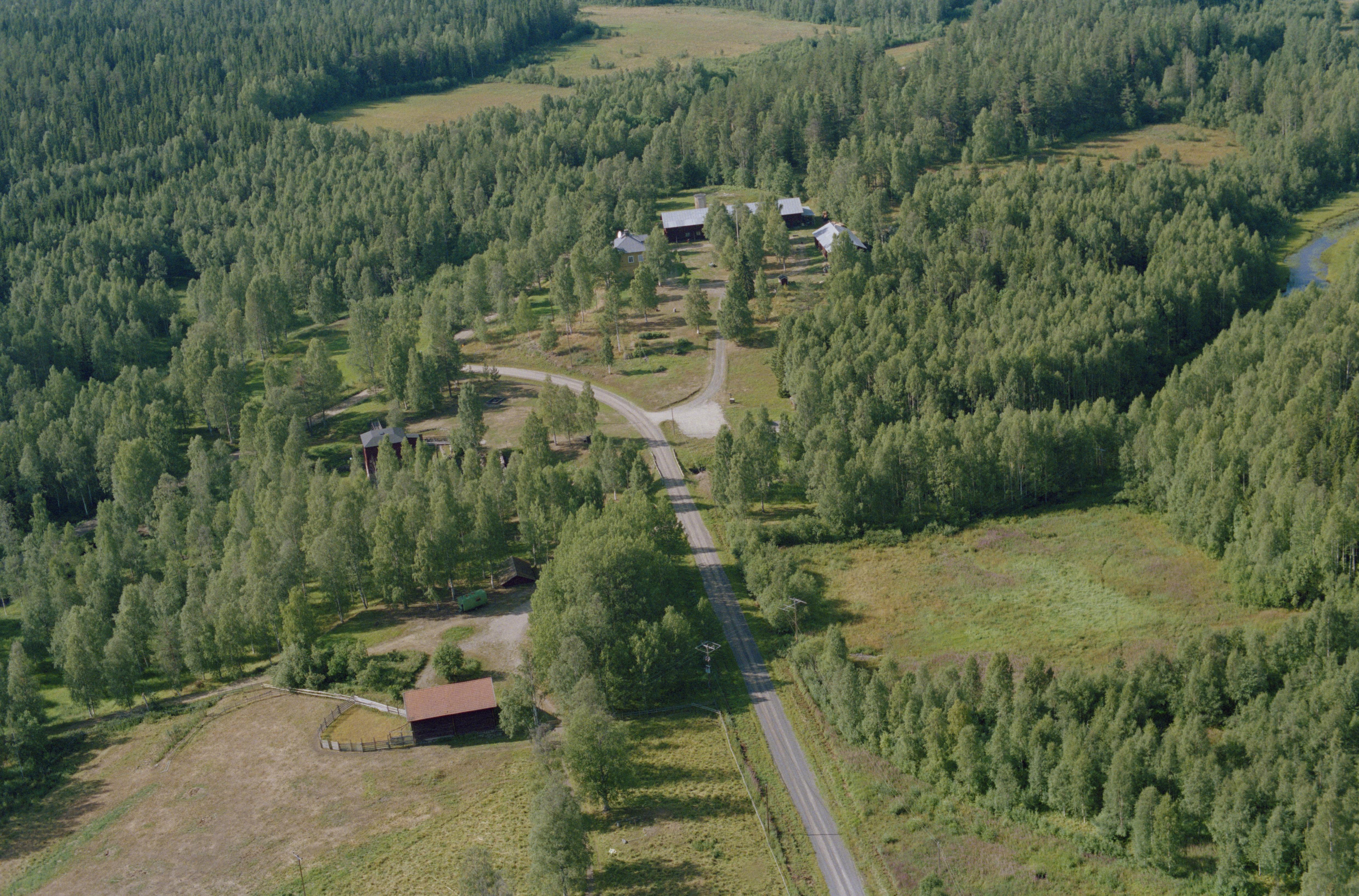 Beskrivning: Rosfors bruk och naturreservat vid Rosån. Hyttlämning RAÄnr Norrfjärden 29:1. Rofors herrgård i bildens övre del. Bilden är tagen mot (väderstreck): VNV