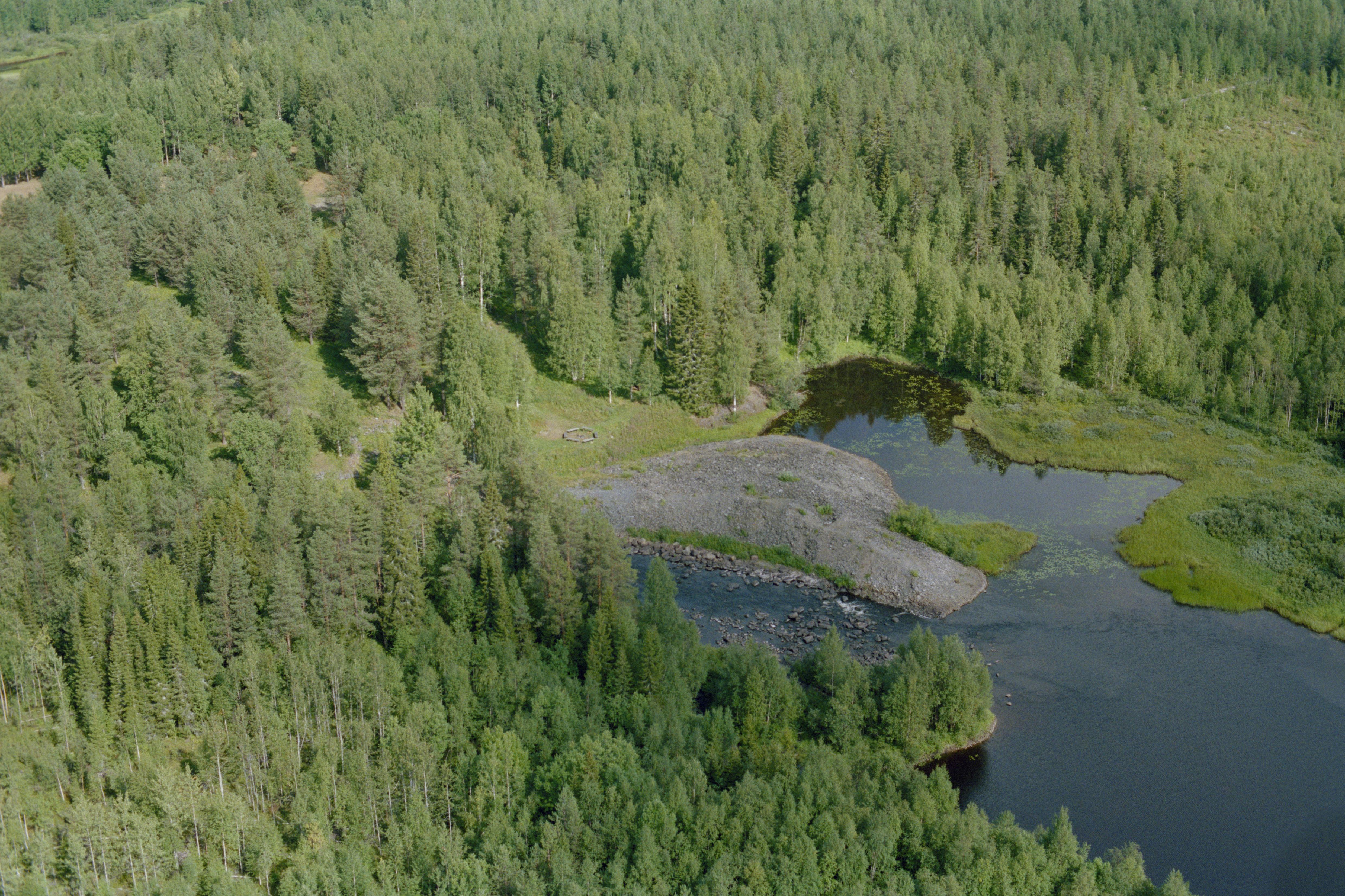 Beskrivning: Avafors bruk vid Masugnsforsen och Masugnsviken i Vitån. Bruks- och hyttlämningar RAÄnr Råneå 35:1-2 vid bildens mitt. Bilden är tagen mot (väderstreck): NO