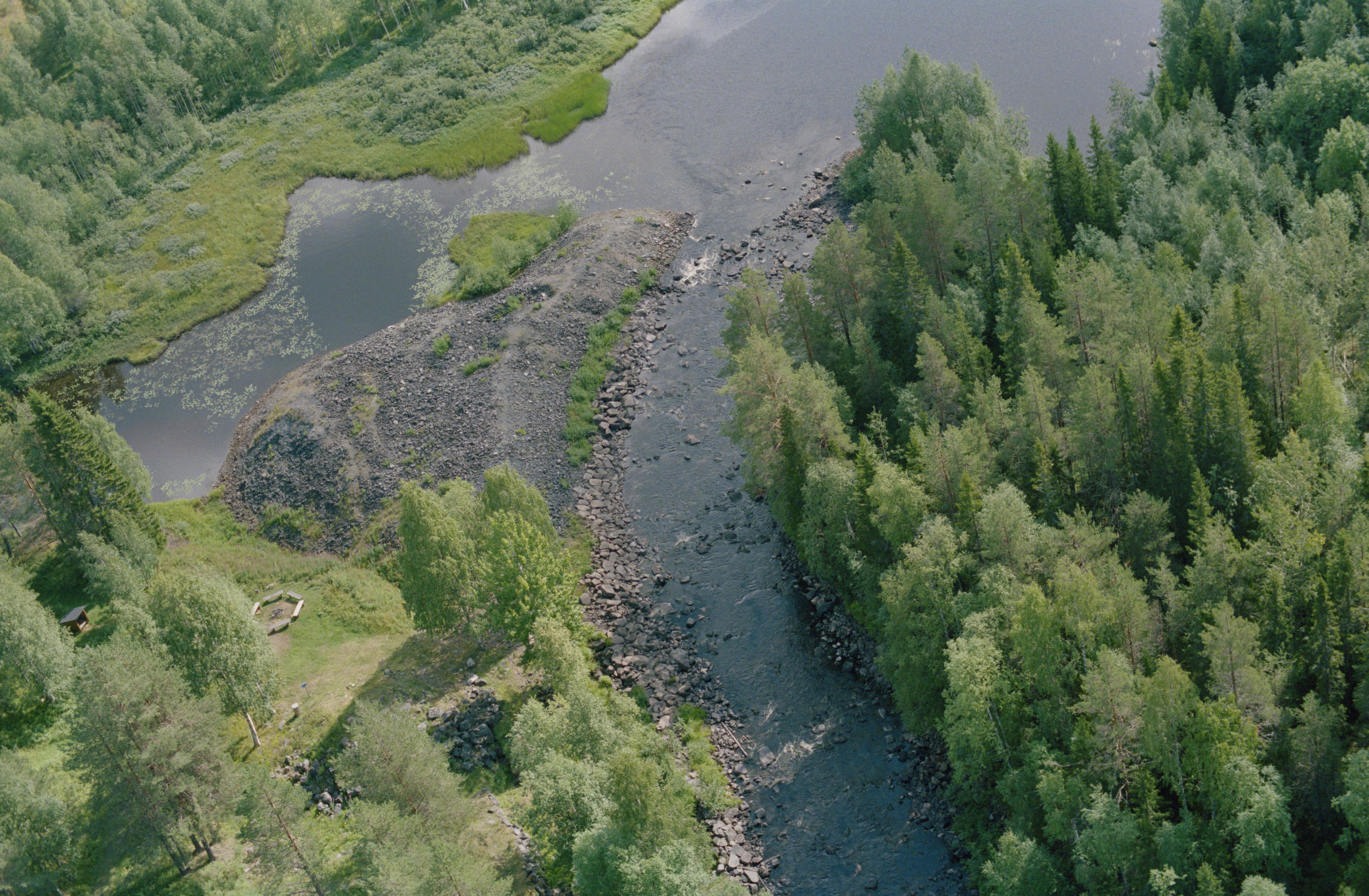 Beskrivning: Avafors bruk vid Masugnsforsen och Masugnsviken i Vitån. Bruks- och hyttlämningar RAÄnr Råneå 35:1-2. Bilden är tagen mot (väderstreck): SSO