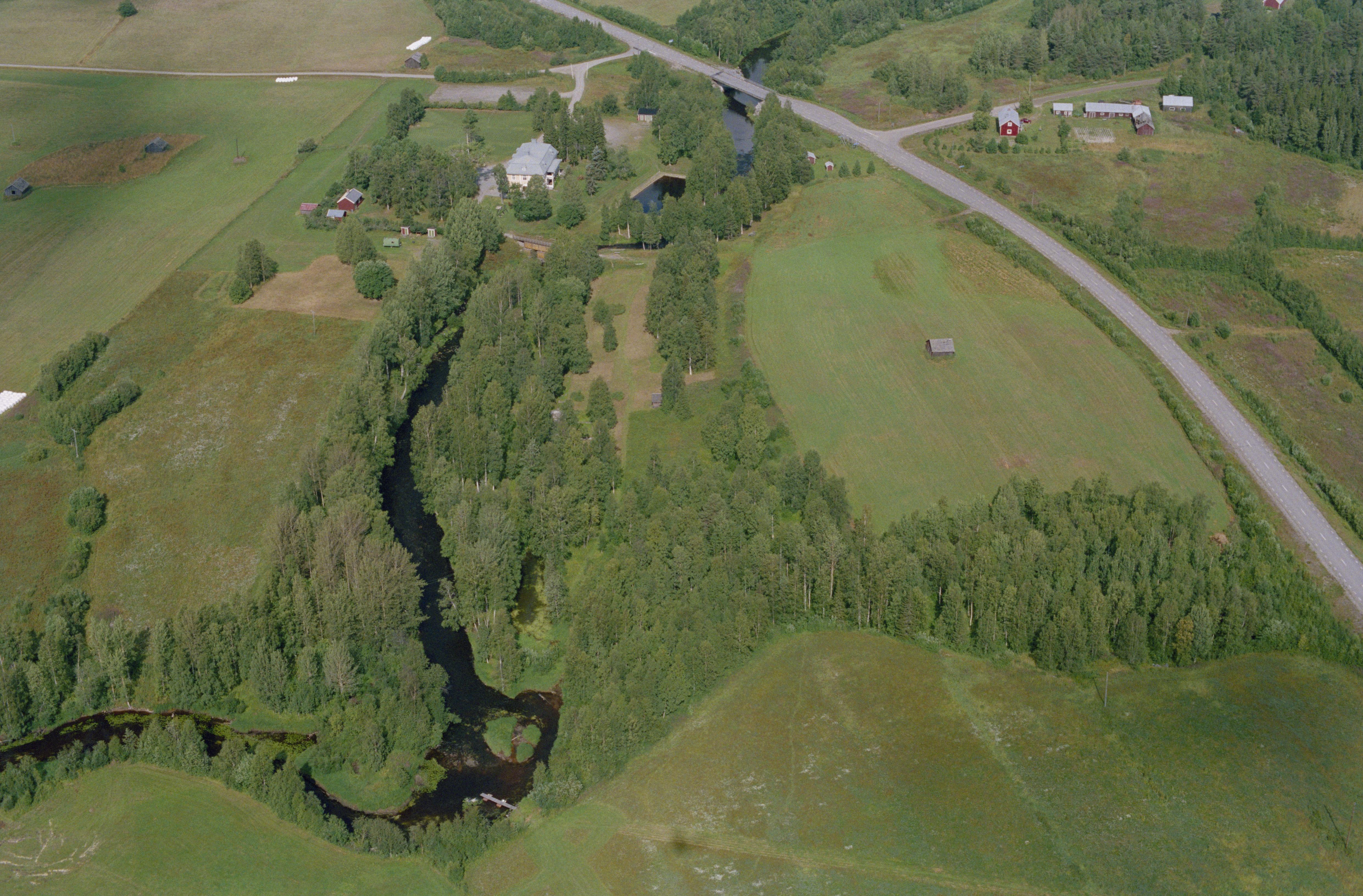 Beskrivning: Meldersteins bruk vid Bjurån. Bruksområde (järnbruk) RAÄnr Råneå 7:1-3. Meldersteins herrgård i bildens övre del. Bilden är tagen mot (väderstreck): N