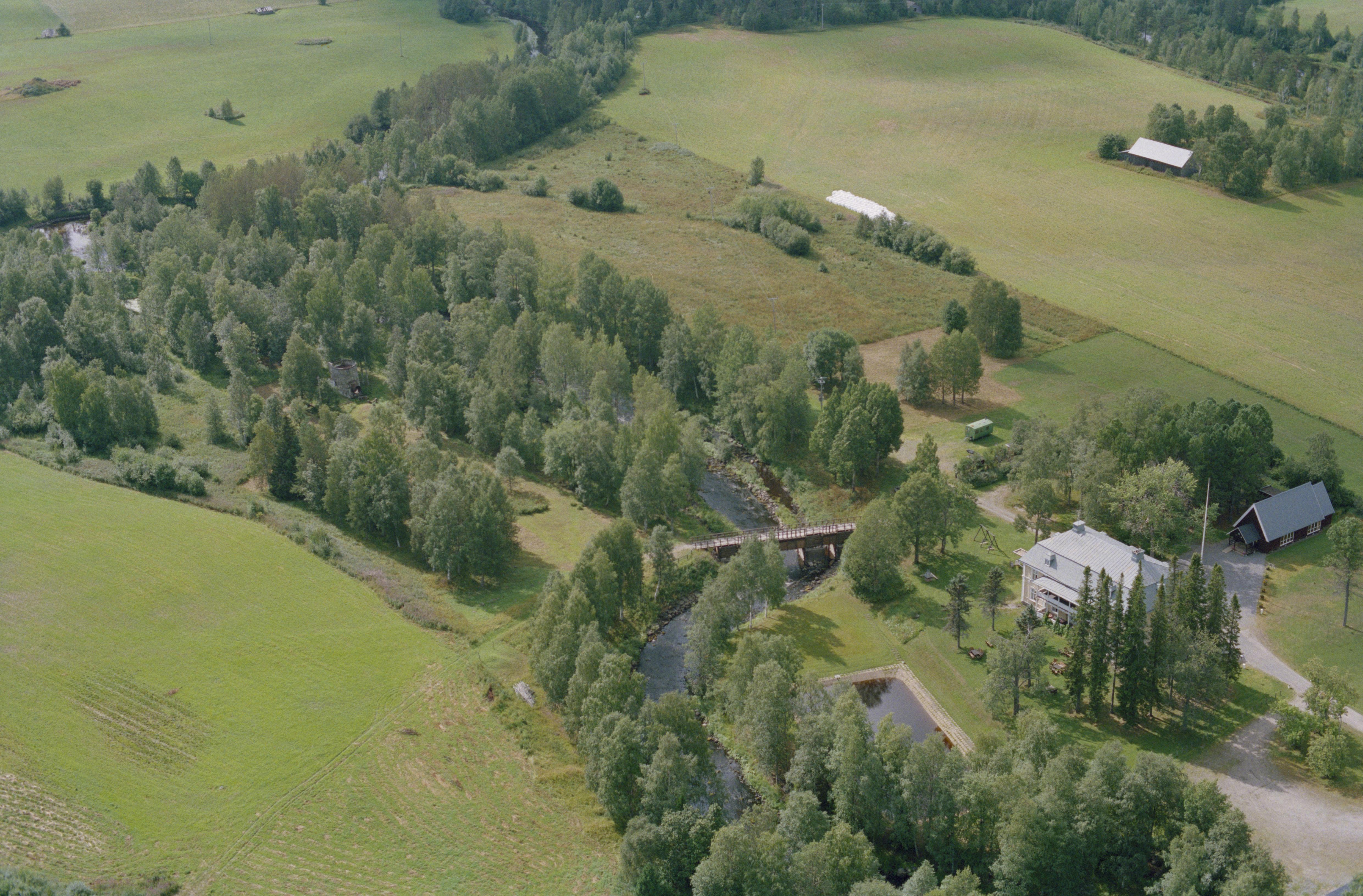 Beskrivning: Meldersteins bruk vid Bjurån. Bruksområde (järnbruk) RAÄnr Råneå 7:1-3. Meldersteins herrgård nere till höger. Bilden är tagen mot (väderstreck): SV