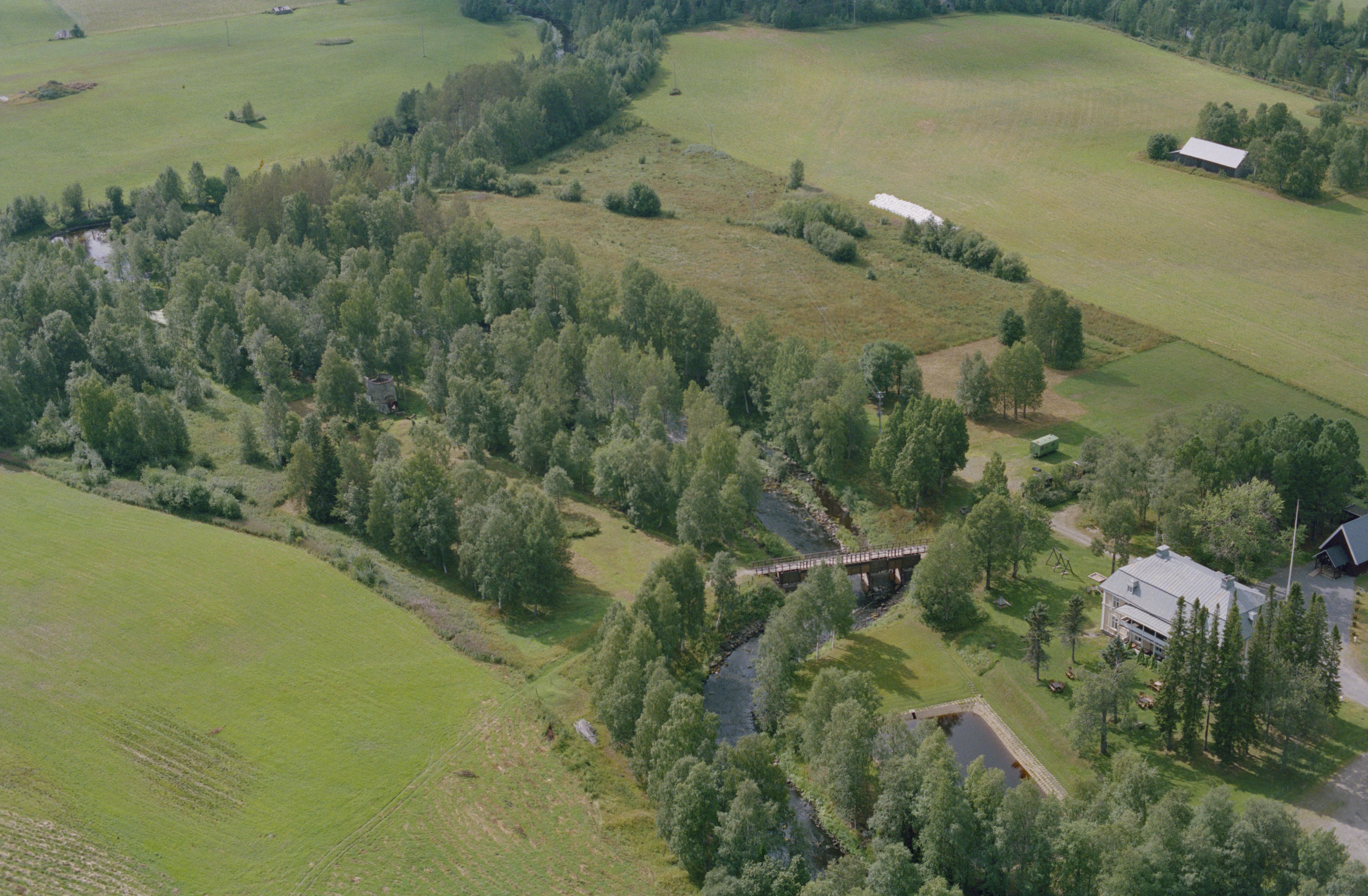 Beskrivning: Meldersteins bruk vid Bjurån. Bruksområde (järnbruk) RAÄnr Råneå 7:1-3. Meldersteins herrgård nere till höger. Bilden är tagen mot (väderstreck): SV