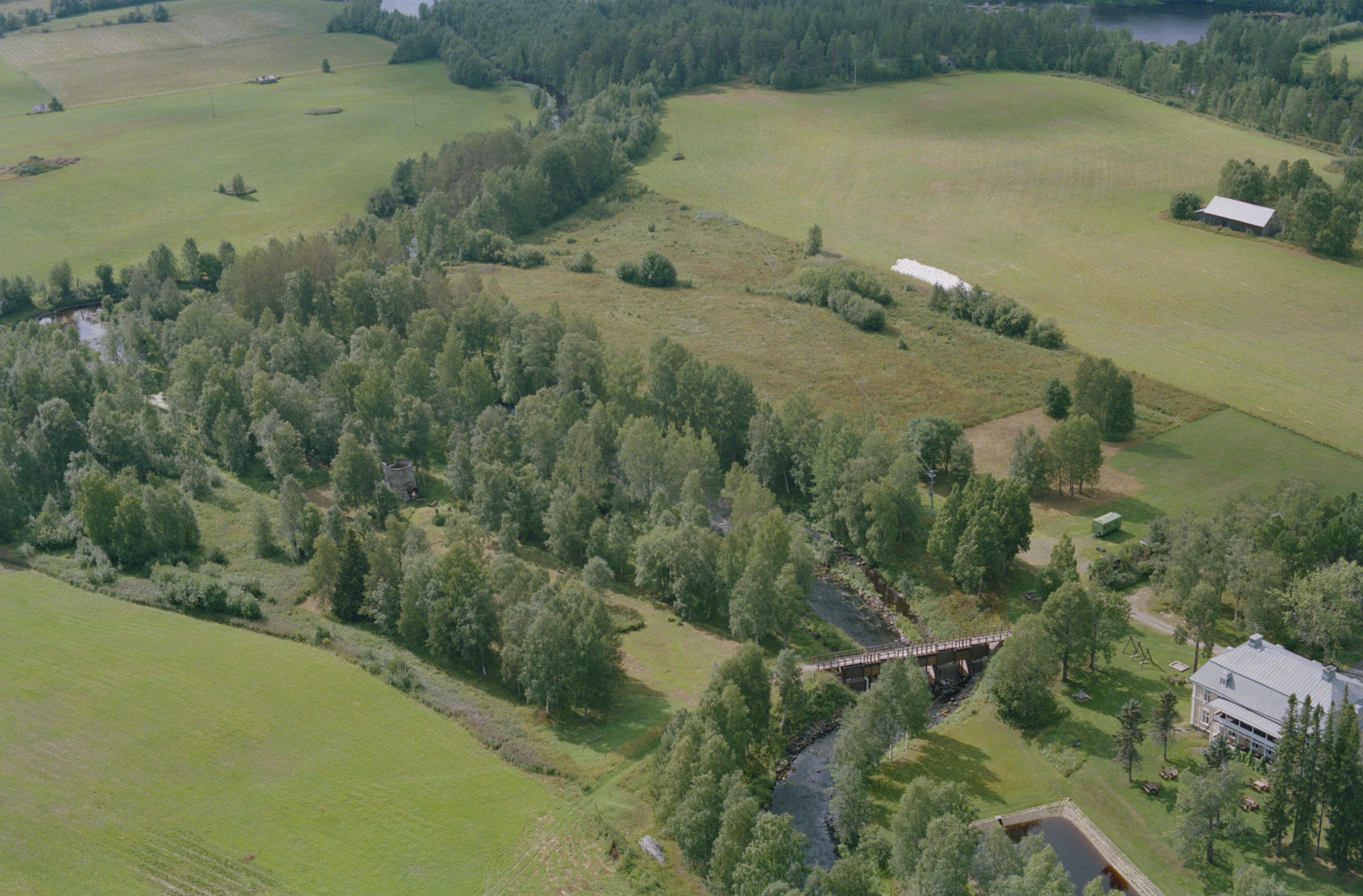 Beskrivning: Meldersteins bruk vid Bjurån. Bruksområde (järnbruk) RAÄnr Råneå 7:1-3. Meldersteins herrgård nere till höger. Bilden är tagen mot (väderstreck): SV
