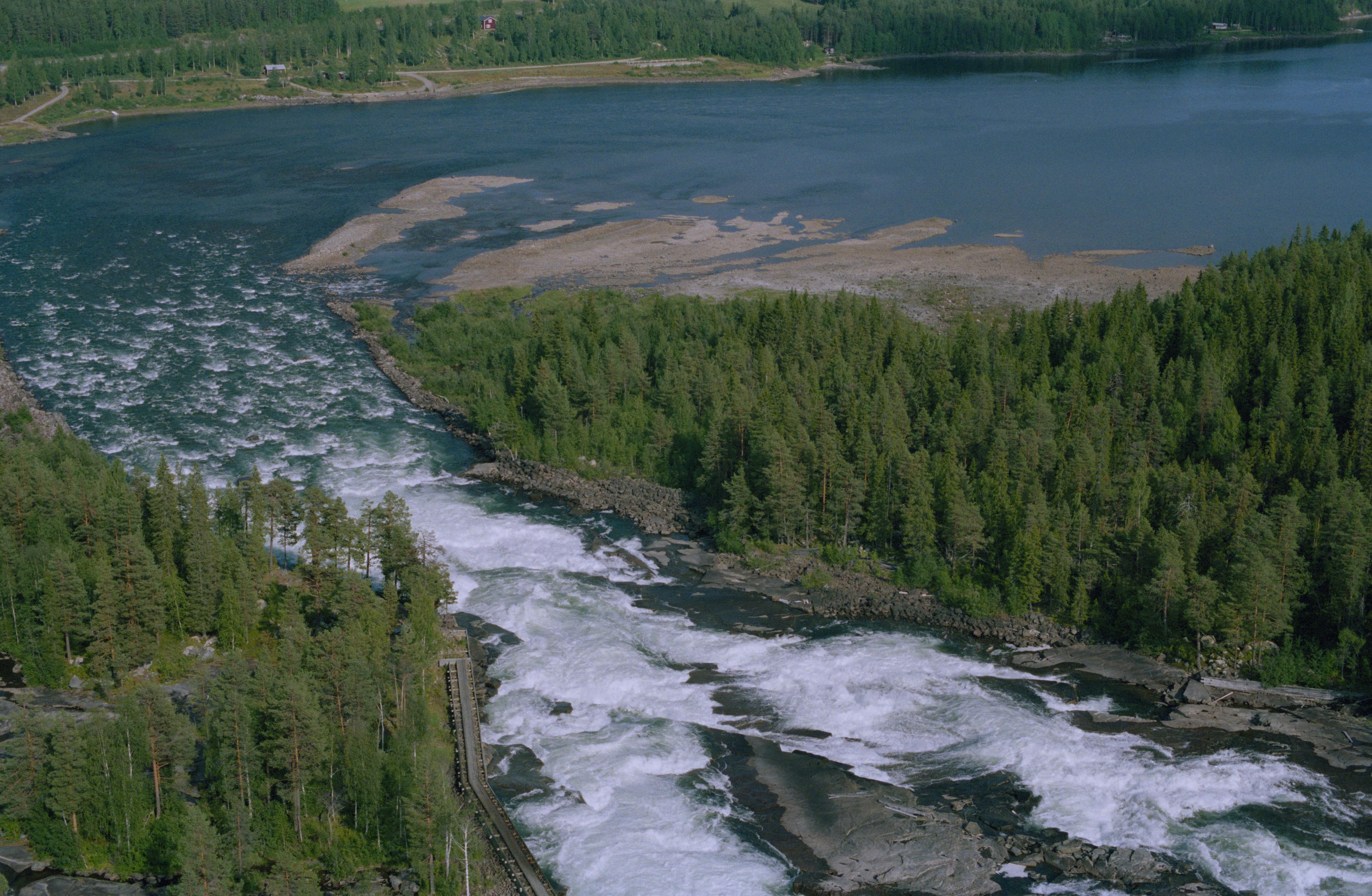 Beskrivning: Storforsen där Piteälven och Varjisån möts i sjön Bredselet. I skogen i bildens högra kant boplats RAÄnr Älvsby 530:1. Storforsens naturreservat. Bilden är tagen mot (väderstreck): ONO