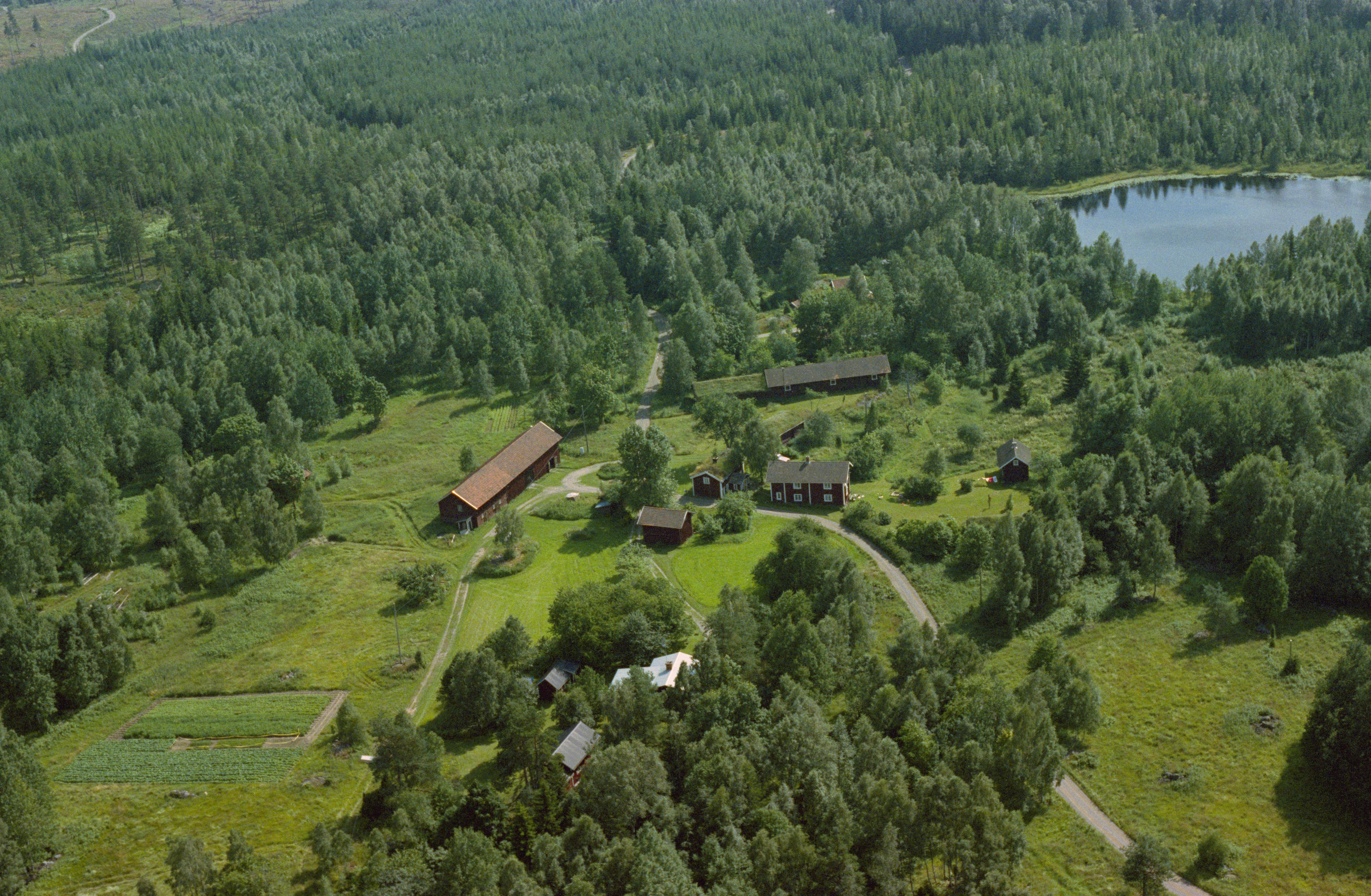Beskrivning: Västra och Östra Nordhult. Tivedsby dubbelgård vid Nordhultasjön. Bilden är tagen mot (väderstreck): SO