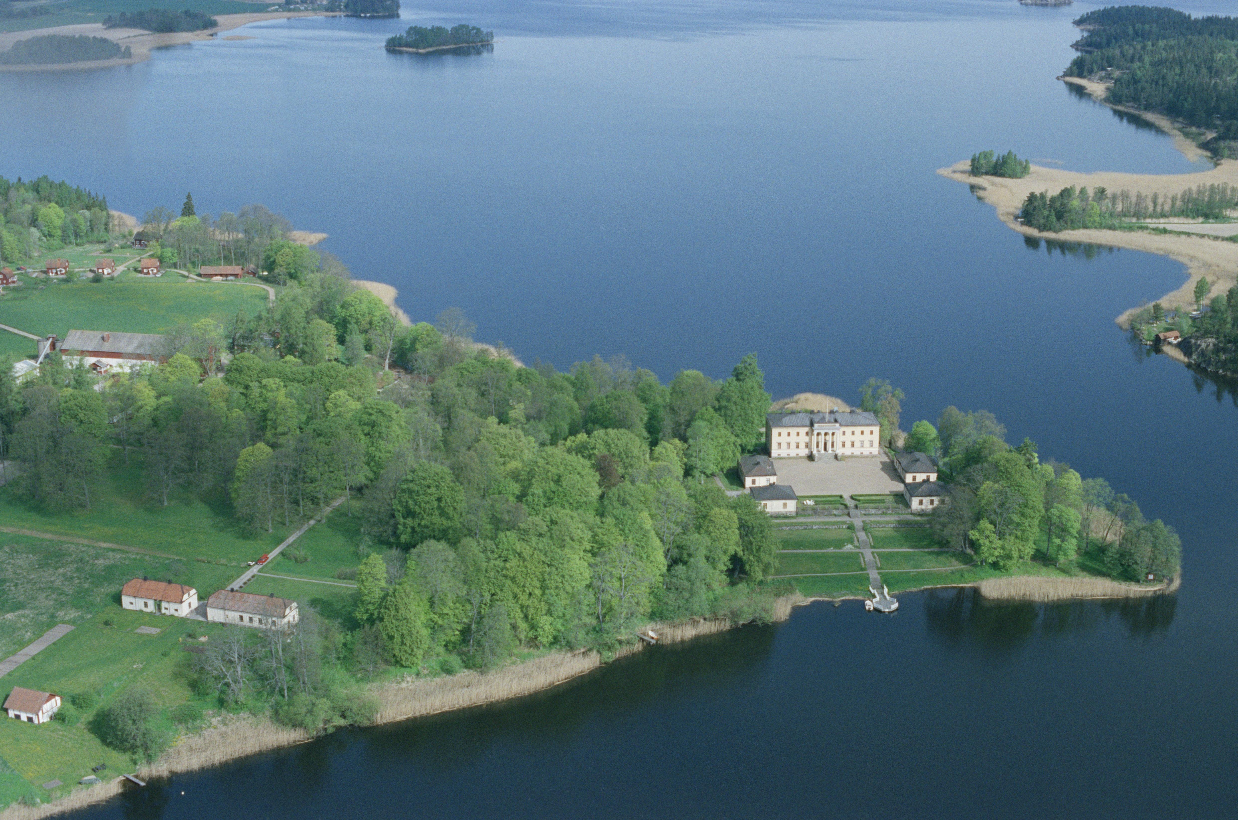 Beskrivning: Stjernsunds slott (skrivs även Stjärnsunds slott) byggnadsminne Askersund 5:1 vid sjön Alsen. Bilden är tagen mot (väderstreck): NNV