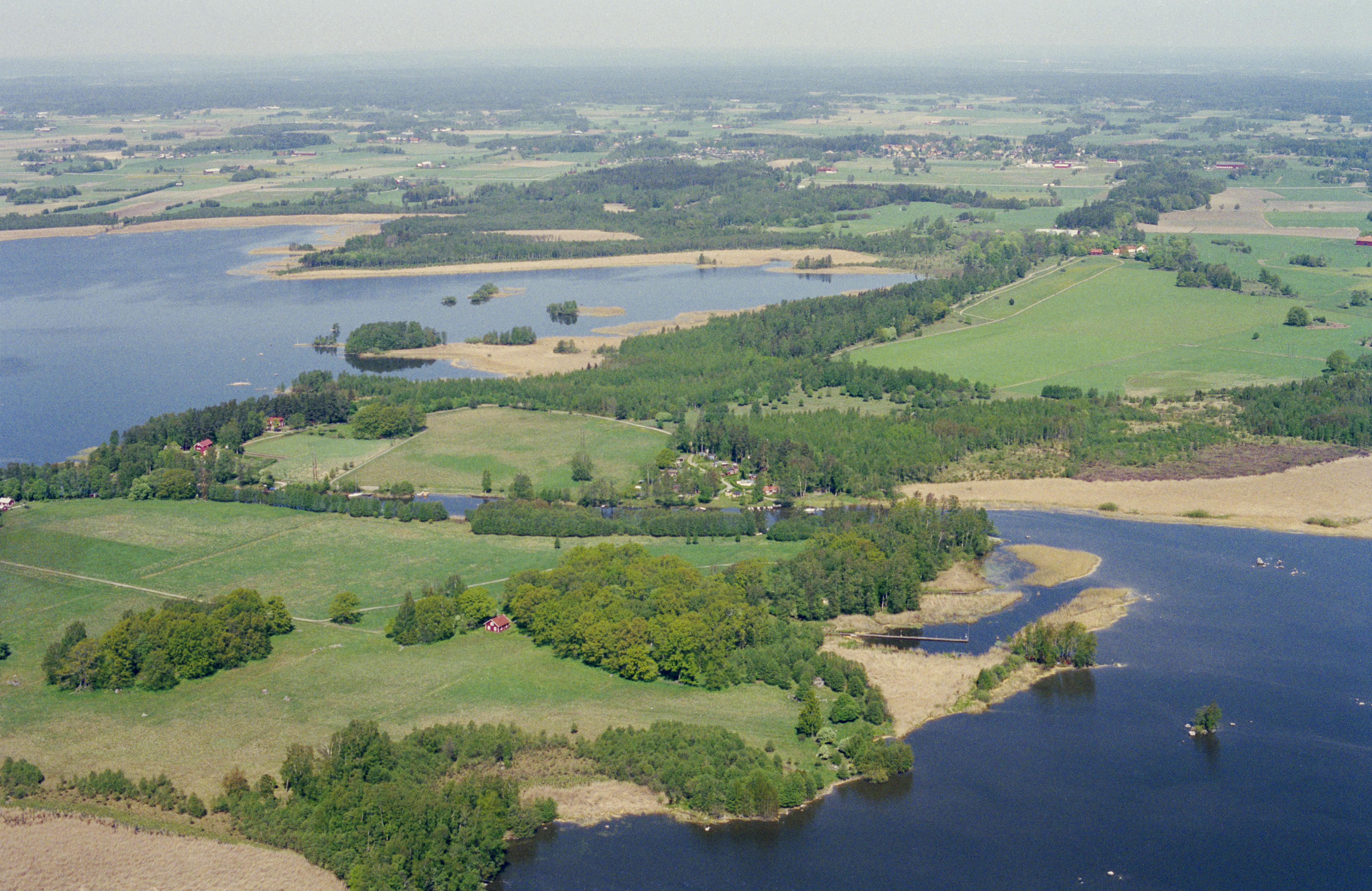Beskrivning: Ollebo, Ekudden och Södra Viken på Äsön. I bildens övre del Skävesund och Skävesunds herrgård i socknet Glanshammar. Bilden är tagen mot (väderstreck): N