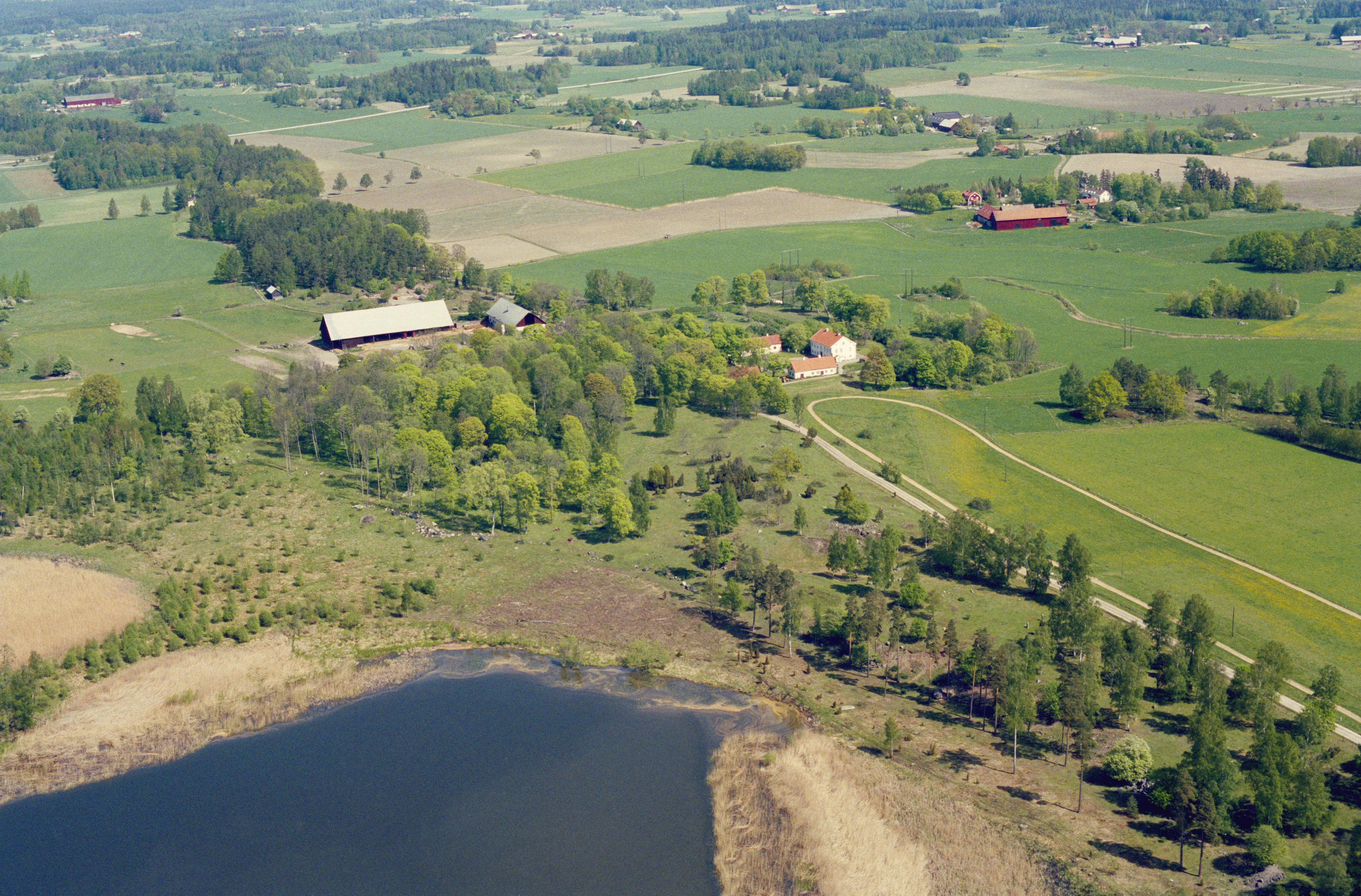 Beskrivning: Skävesunds herrgård vid sjön Hjälmaren. Nere till höger gravfält RAÄnr Glanshammar 3:1. Bilden är tagen mot (väderstreck): NO