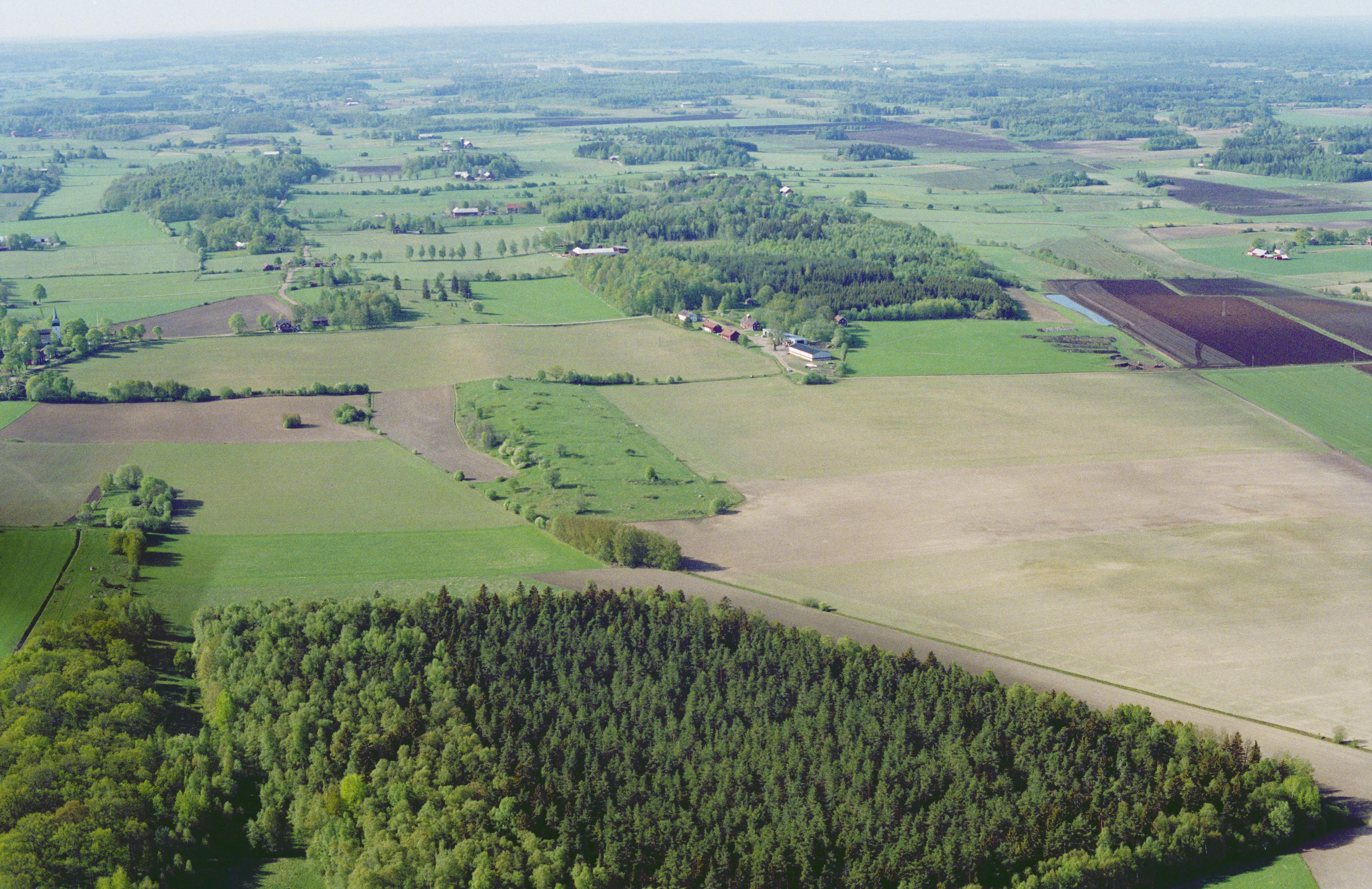 Beskrivning: Drumlinområde. Tjugesta gamla tomt RAÄnr Hackvad 34:1. Här låg under medeltiden ett trettiotal byggnader. Socknet Edsberg i bildens övre del. Bilden är tagen mot (väderstreck): SV