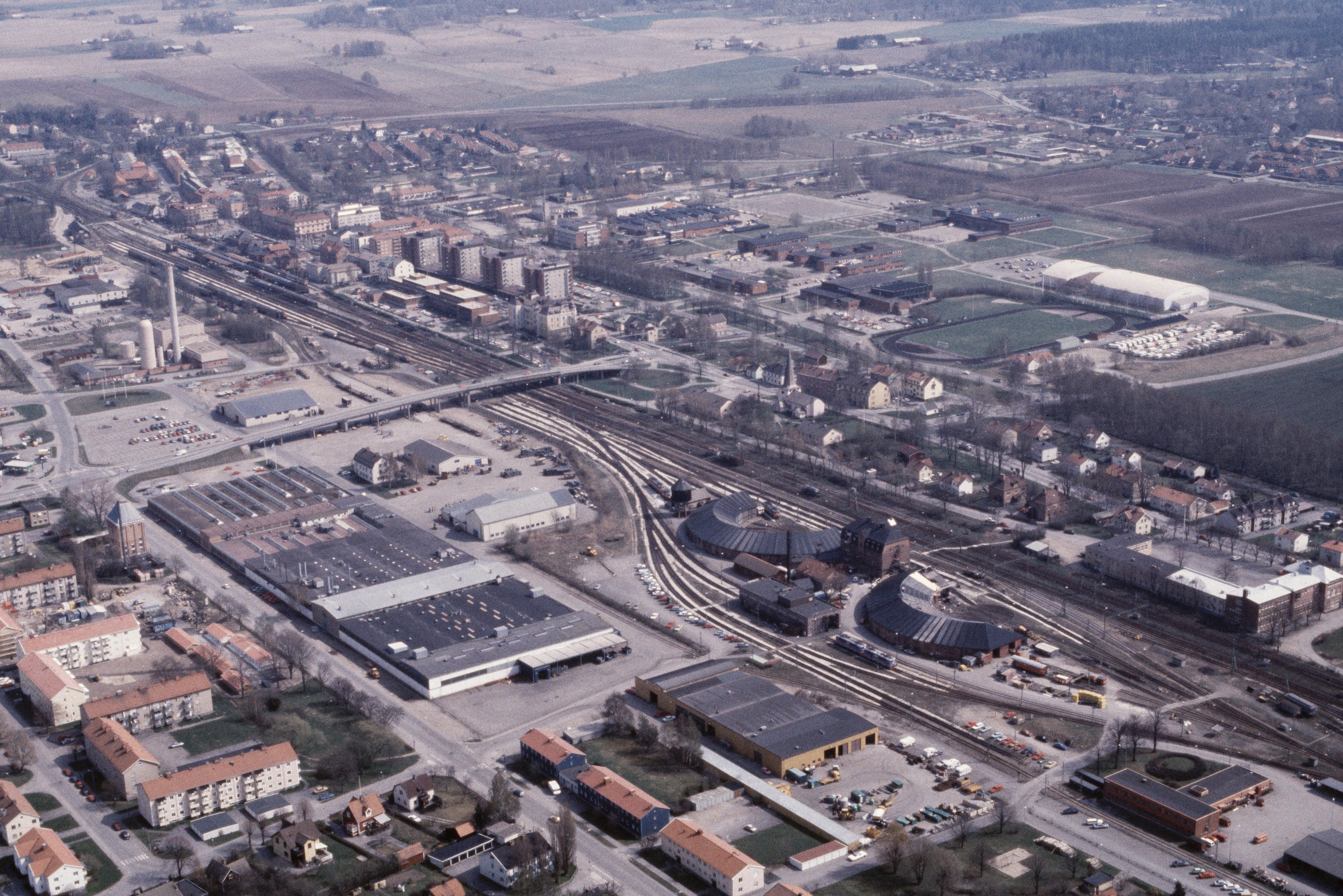 Beskrivning: Beskrivning: Hallsbergs tätort. Järnvägsstation / järnvägsknut. Bilden är tagen mot (väderstreck): Ö Fotosyfte: Flygbildsdokumentation