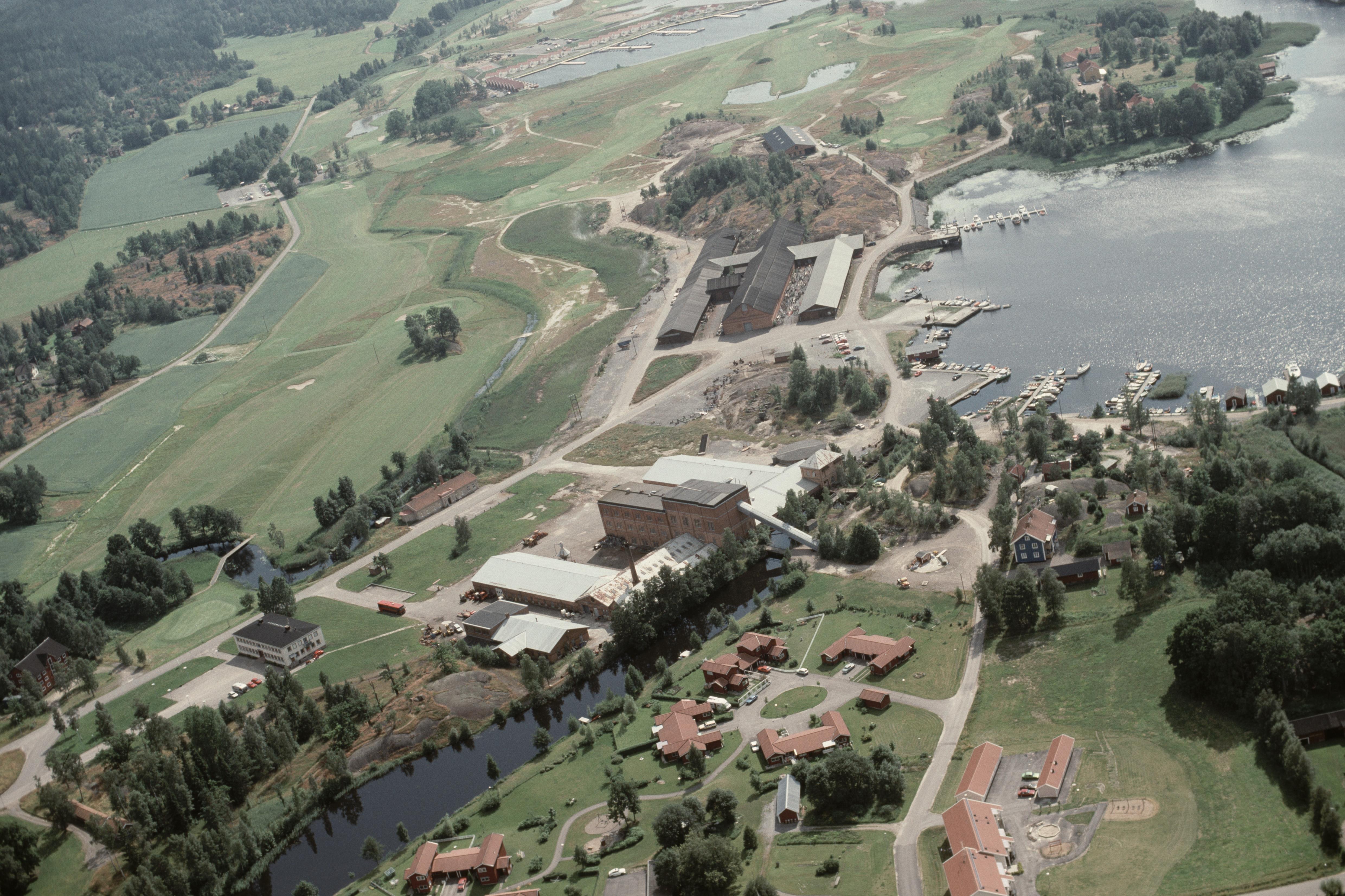 Beskrivning: Åmmebergs bruk mellan Tomteviken (uppe till höger) och Åmmelången. Till vänster om bildens mitt smedja RAÄnr Hammar 388:1 vid Åmmebergs herrgård. Bilden är tagen mot (väderstreck): S