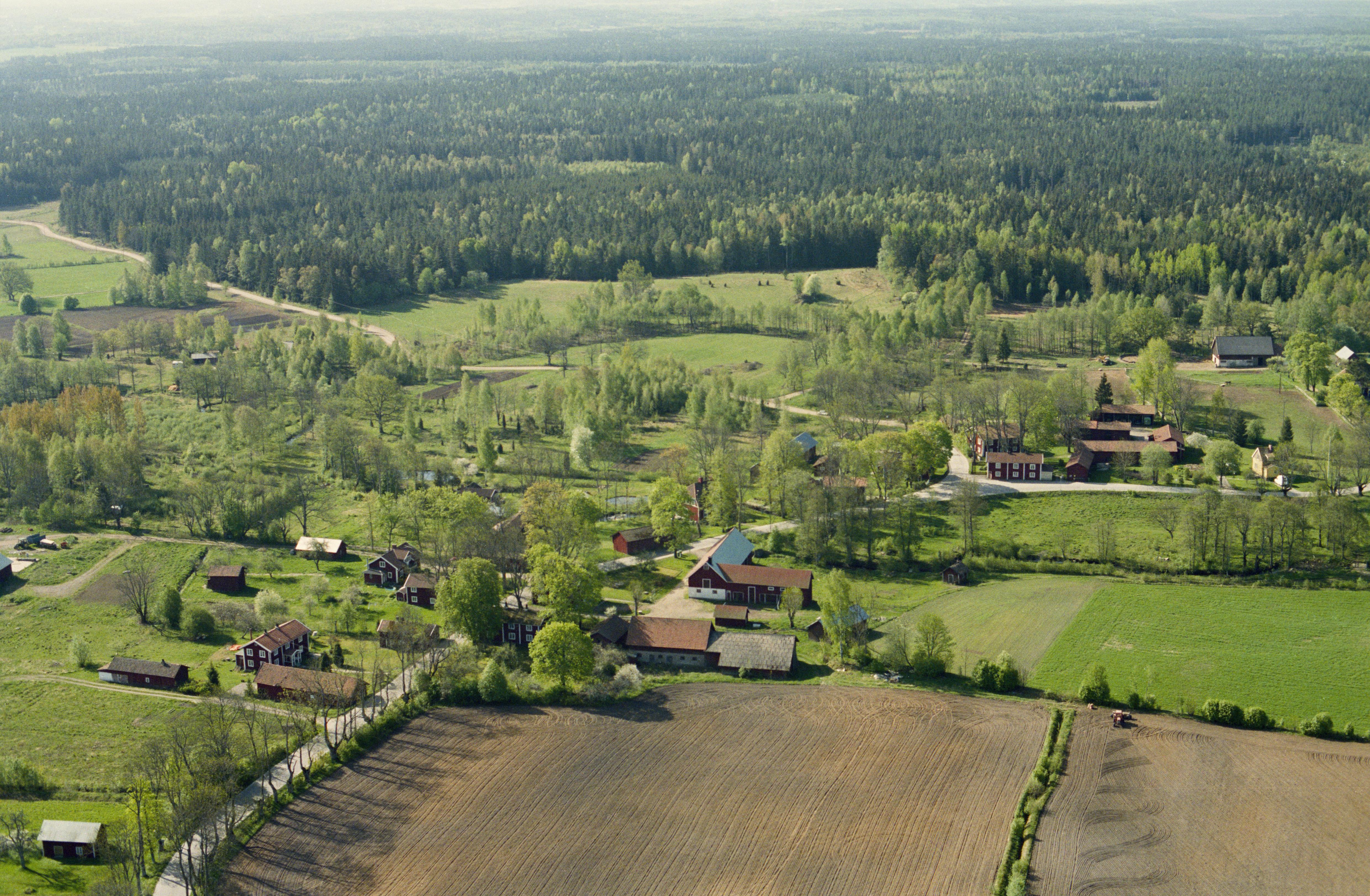 Beskrivning: Lekhyttan by vid Lekhytteån. Hyttområde RAÄnr Hidinge 29:1 och loftbod Hidinge 30:1 vid bildens mitt. Bilden är tagen mot (väderstreck): S