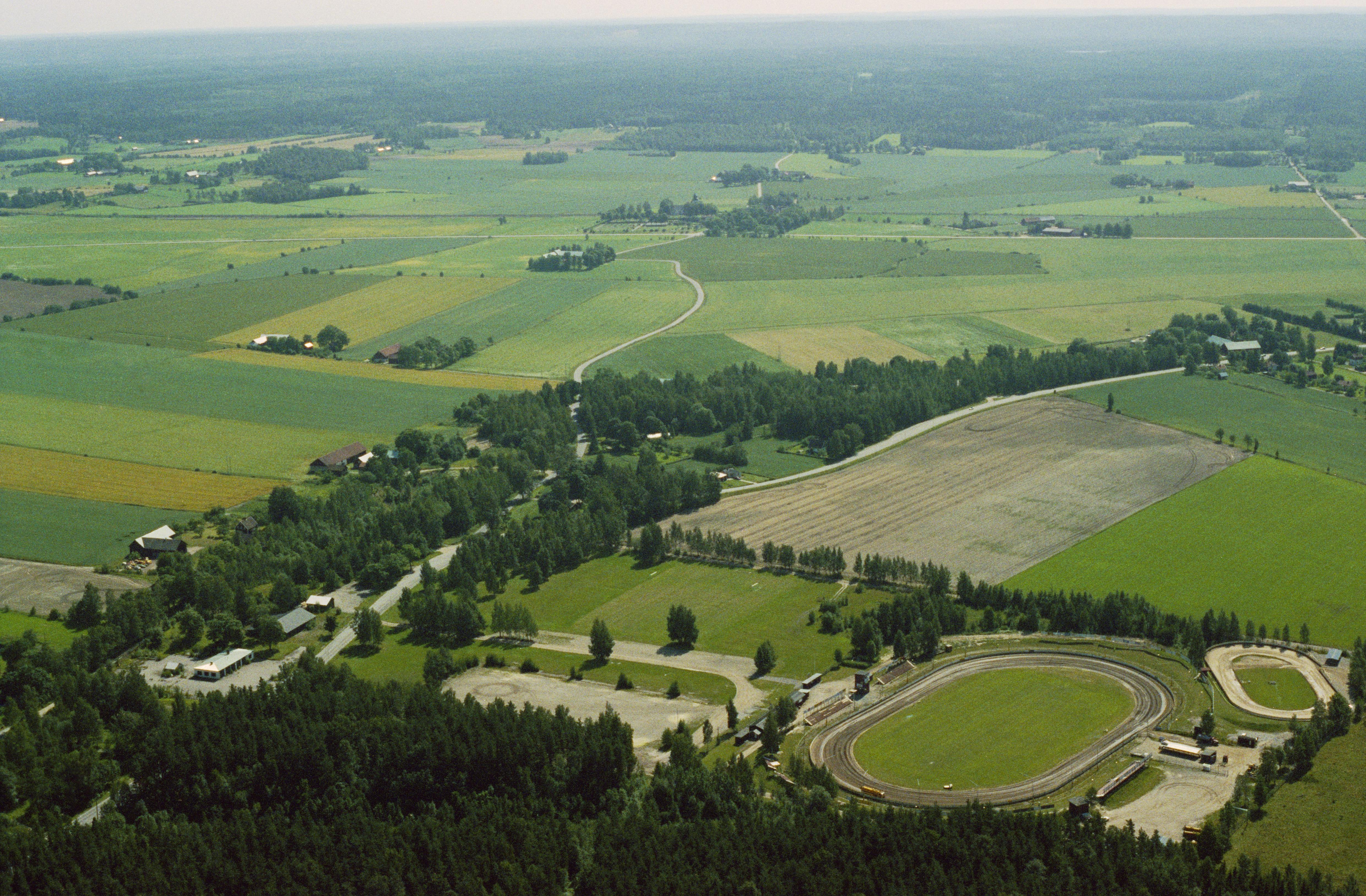 Beskrivning: Motorbana i Sannaheds by. Under bildens mitt minnesmärke RAÄnr Kumla 46:1. I bildens övre del Marka by i socknet Hallsberg. Bilden är tagen mot (väderstreck): SSO