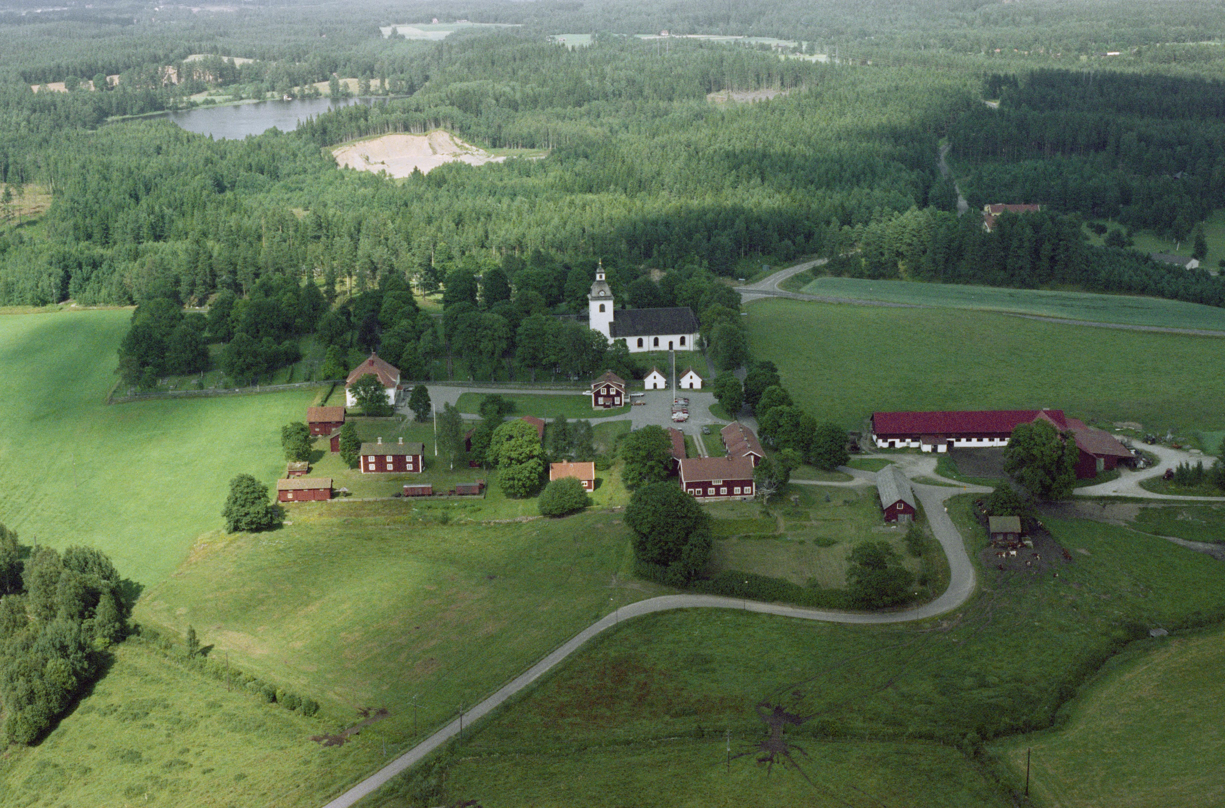 Beskrivning: Lerbäcks kyrka, Lerbäcks hembygdsgård RAÄnr Lerbäck 130:1 och Gamla gästgivaregård Lerbäck 148:1. Bilden är tagen mot (väderstreck): N