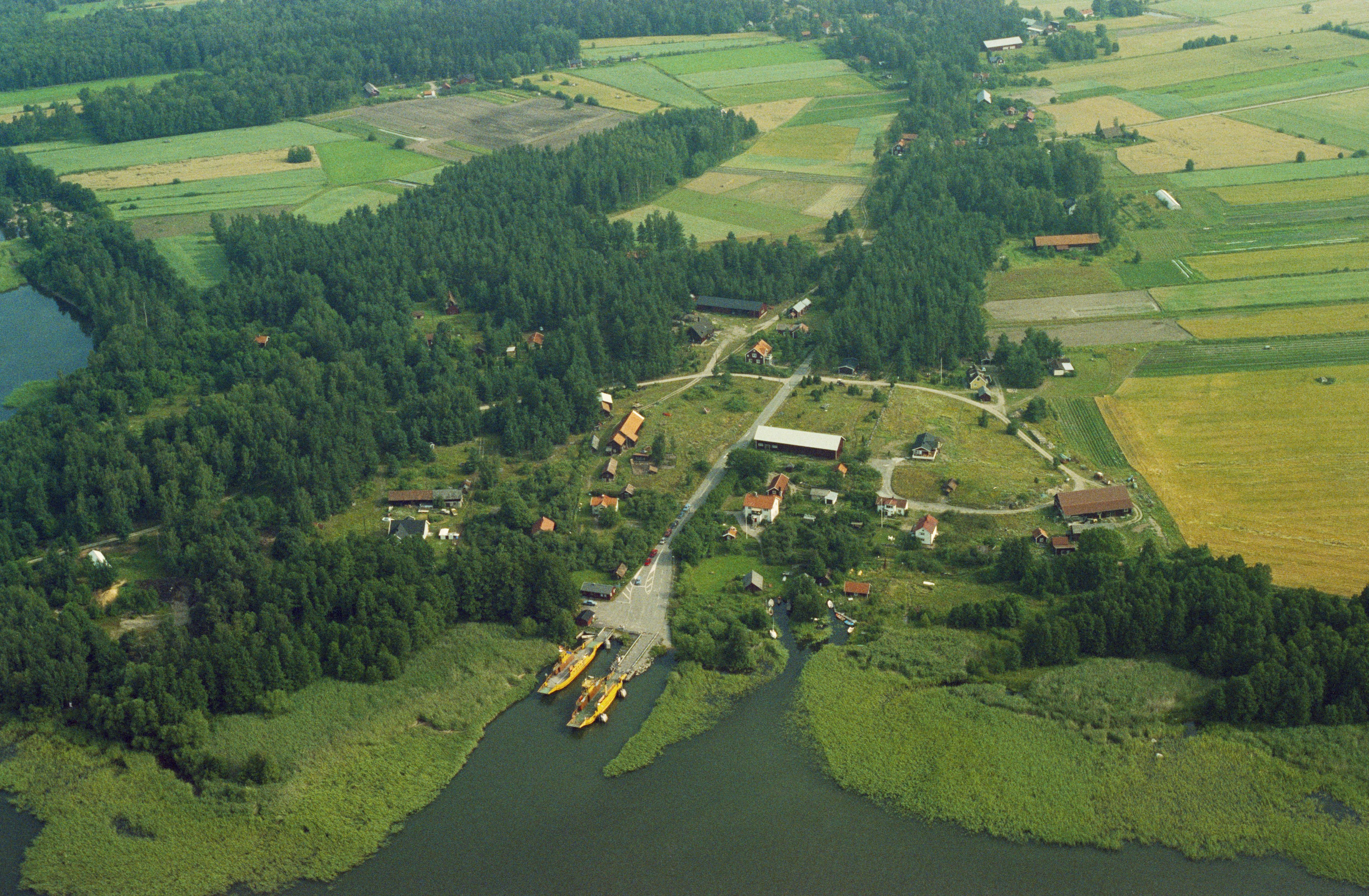 Beskrivning: Södra Vinön by på Vinön i sjön Hjälmaren. Fångstgrop RAÄnr Lännäs 164 till vänster om bildens mitt. Bilden är tagen mot (väderstreck): N