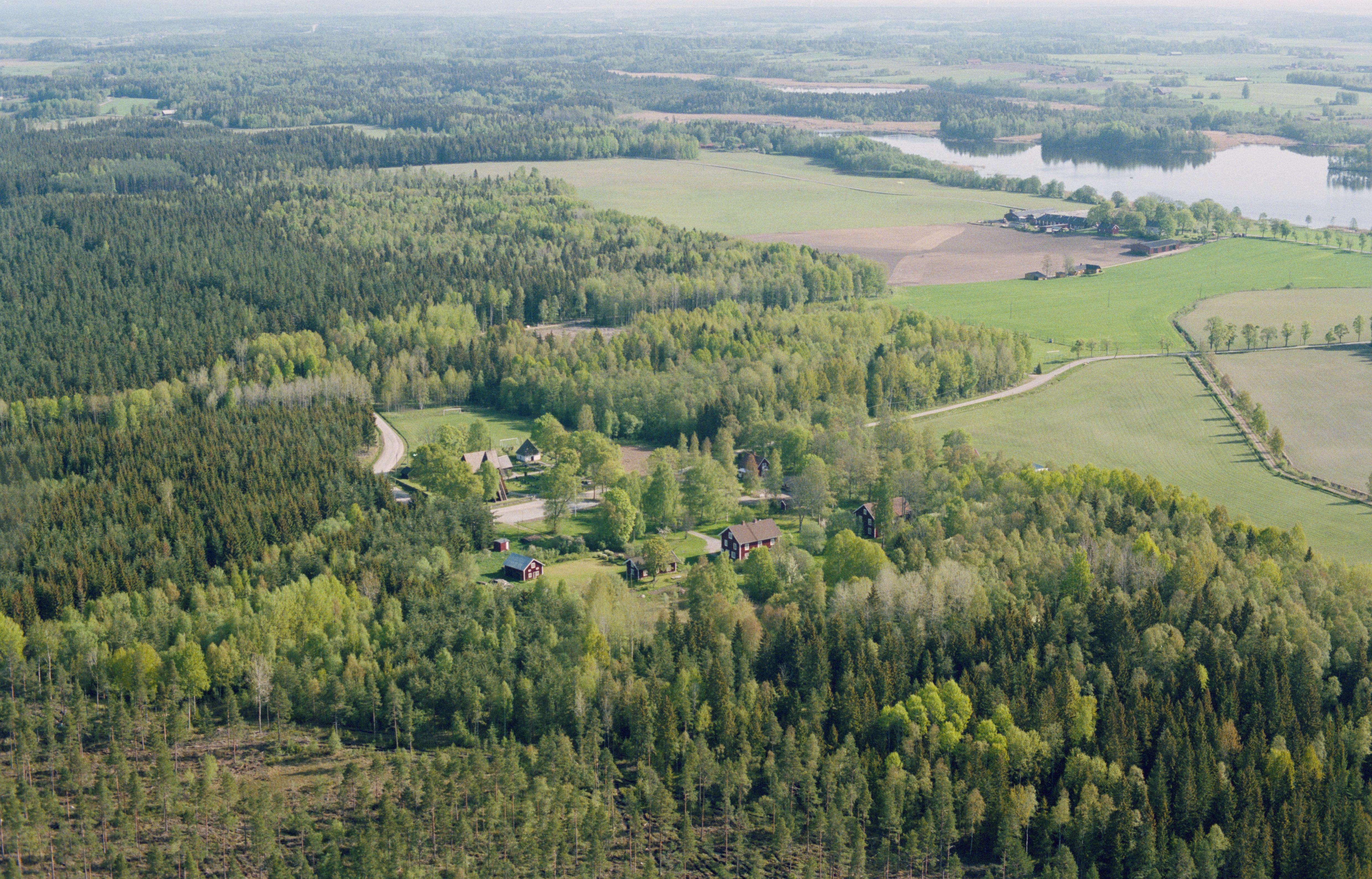 Beskrivning: Tångeråsa kyrka och klockargård vid bildens mitt. I bildens övre del Logsjön. Bilden är tagen mot (väderstreck): NO