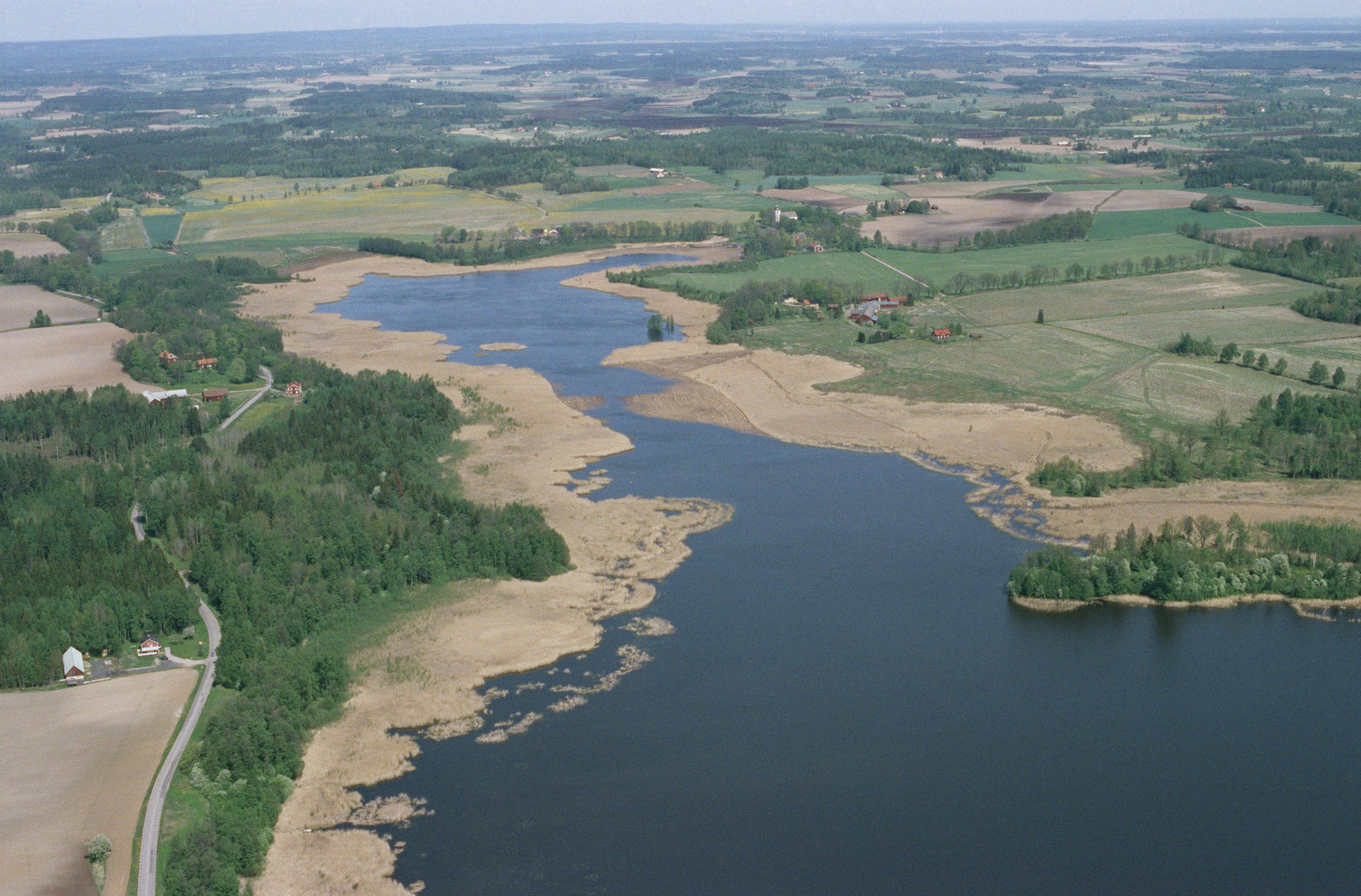 Beskrivning: Vibysjön. Till vänster gården Lundby och området "Etternärke". Till höger Husby med bytomt RAÄnr Viby 374. I bildens övre del Körtingsbergs herrgård, Viby gård och Viby kyrka. Bilden är tagen mot (väderstreck): NNO