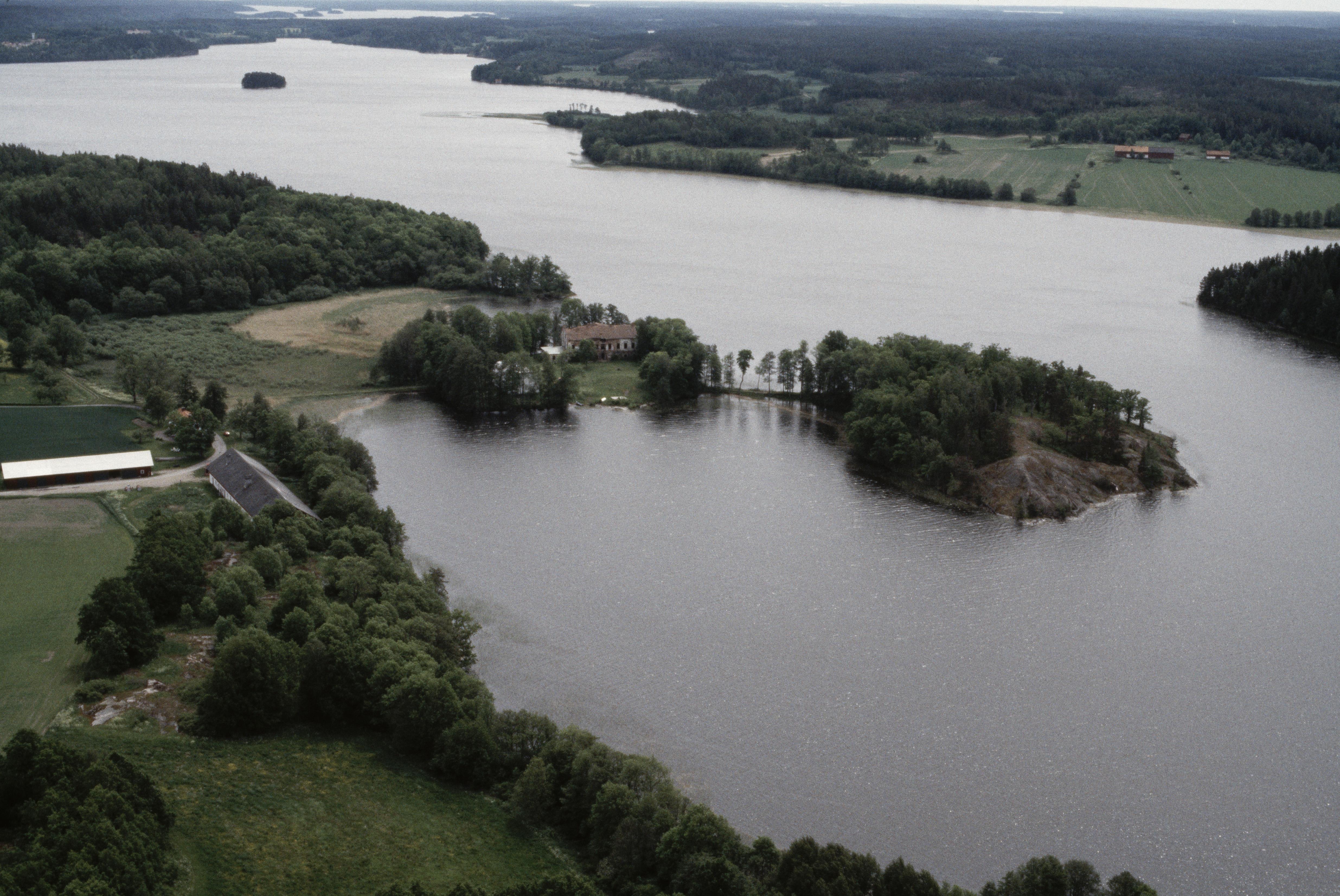 Beskrivning: Vinäs herrgård vid Storsjön, byggd på slottsruin Vinäs slott RAÄnr Västra Ed 191:1. På Slottsholmen bredvid lämningar efter borg Västra Ed 201:1. Bilden är tagen mot (väderstreck): SO