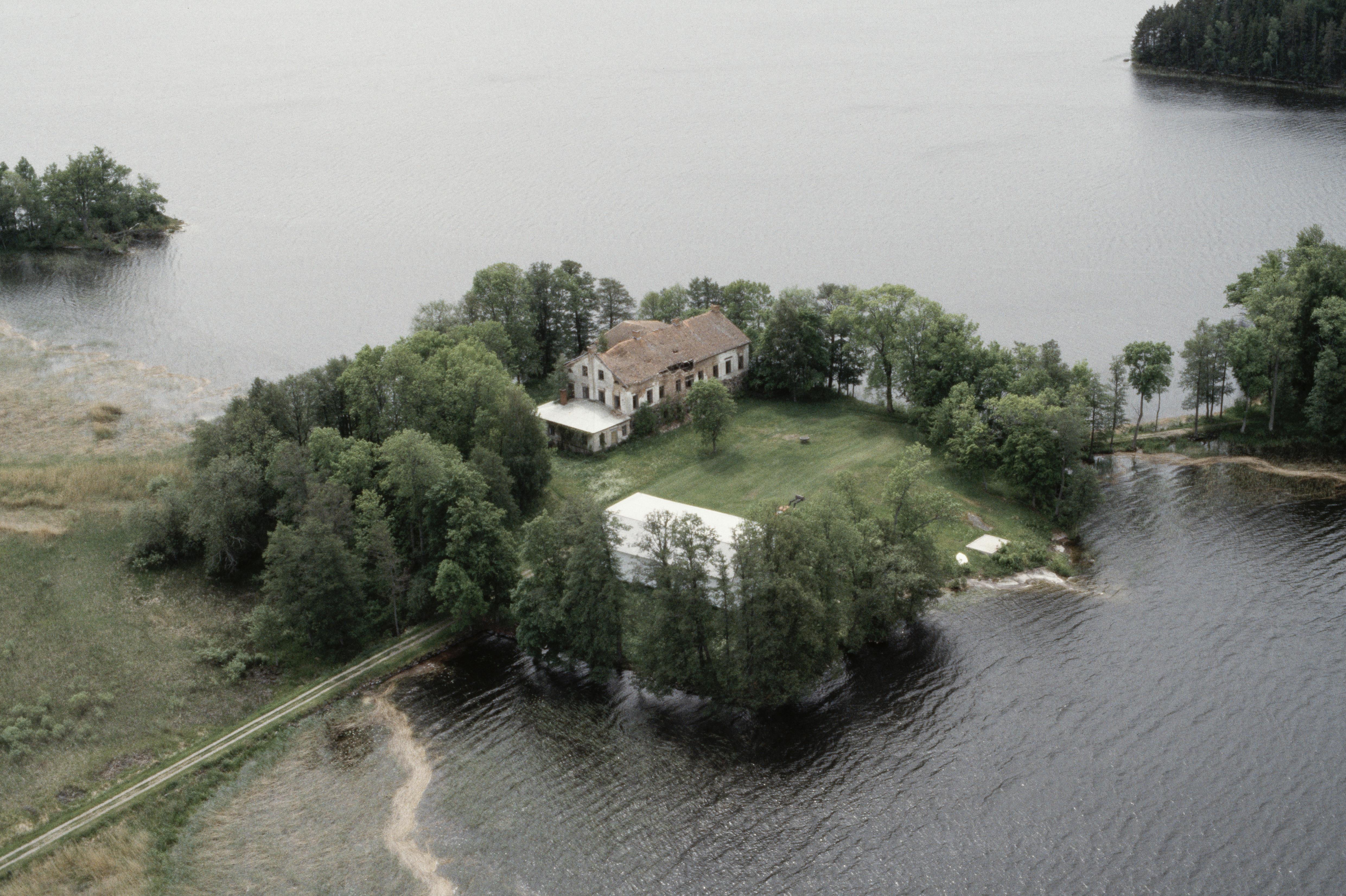 Beskrivning: Vinäs herrgård vid Storsjön, byggd på slottsruin Vinäs slott RAÄnr Västra Ed 191:1. Bilden är tagen mot (väderstreck): S