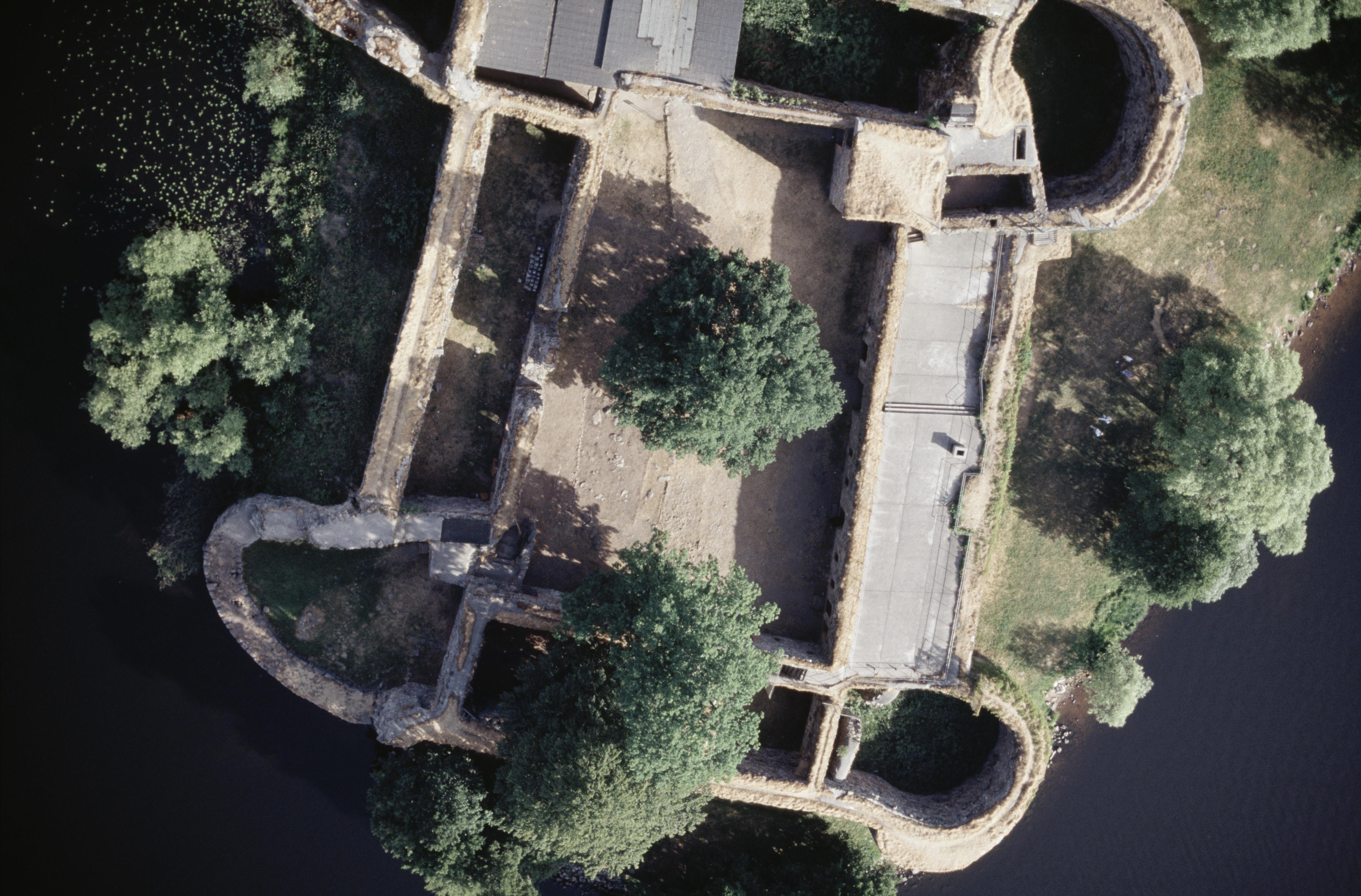 Beskrivning: Kronobergs slottsruin RAÄnr Växjö 93:1 vid Helgasjön. Befäst anläggning, borgområde, bestående av slottsruin uppförd i gråsten samt 2 förborgar. Bilden är tagen mot (väderstreck): S
