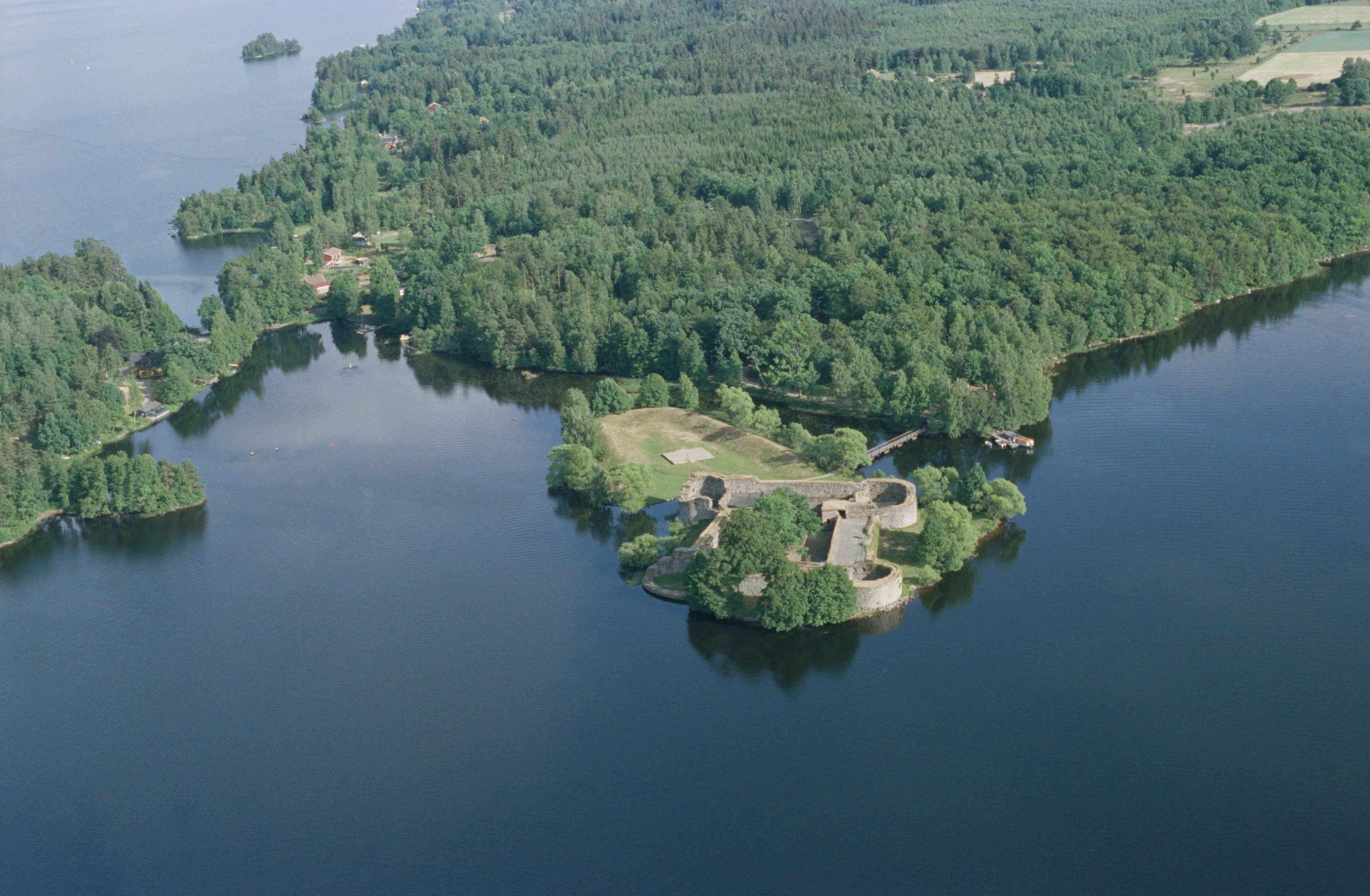Beskrivning: Kronobergs slottsruin RAÄnr Växjö 93:1 vid Helgasjön. Befäst anläggning, borgområde, bestående av slottsruin uppförd i gråsten samt 2 förborgar. Bilden är tagen mot (väderstreck): SO
