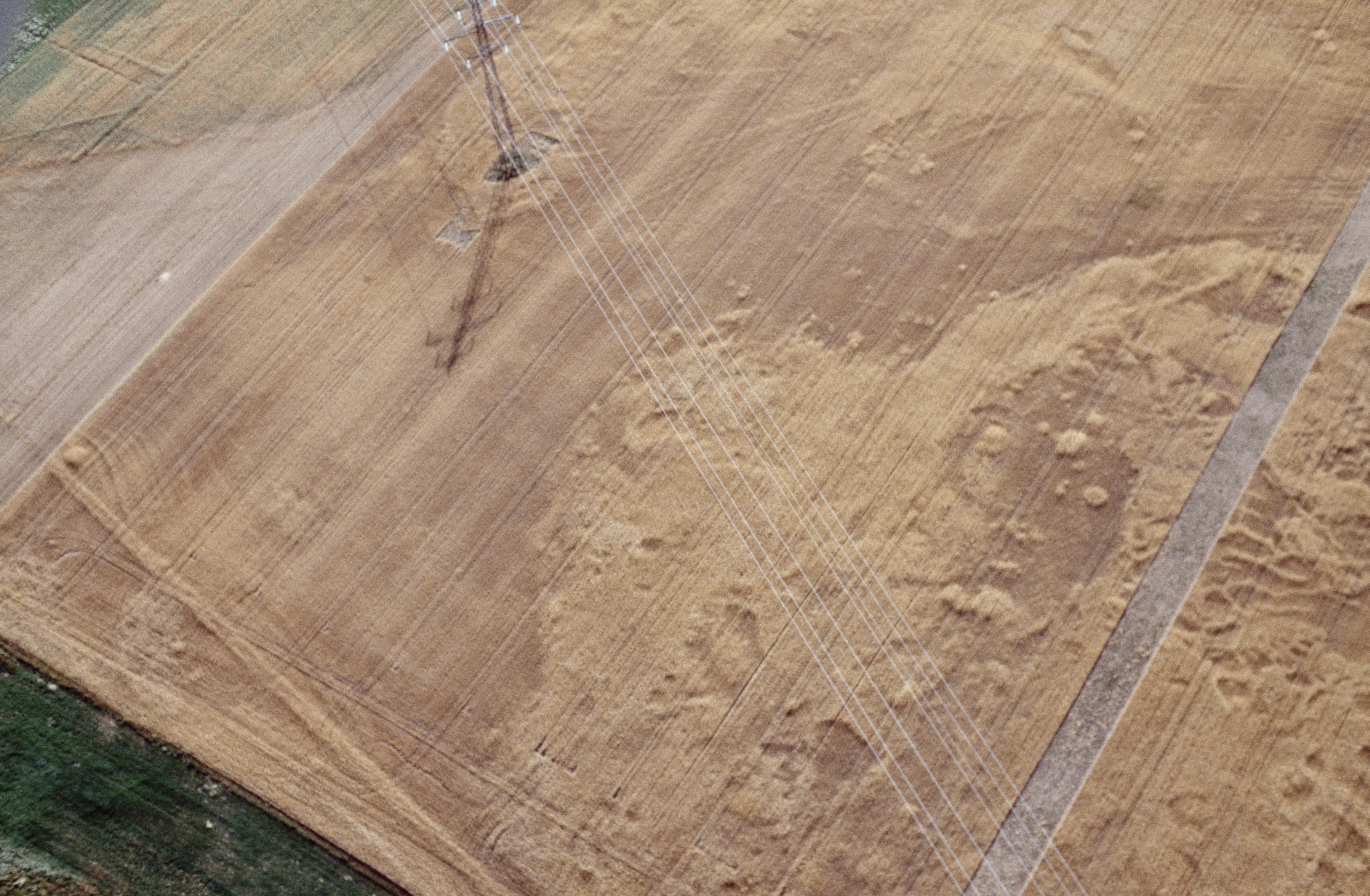 Beskrivning: Cropmarks i åker vid Kuleholms torp, näre röse RAÄnr Åby 52:1. Bilden är tagen mot (väderstreck): SSV