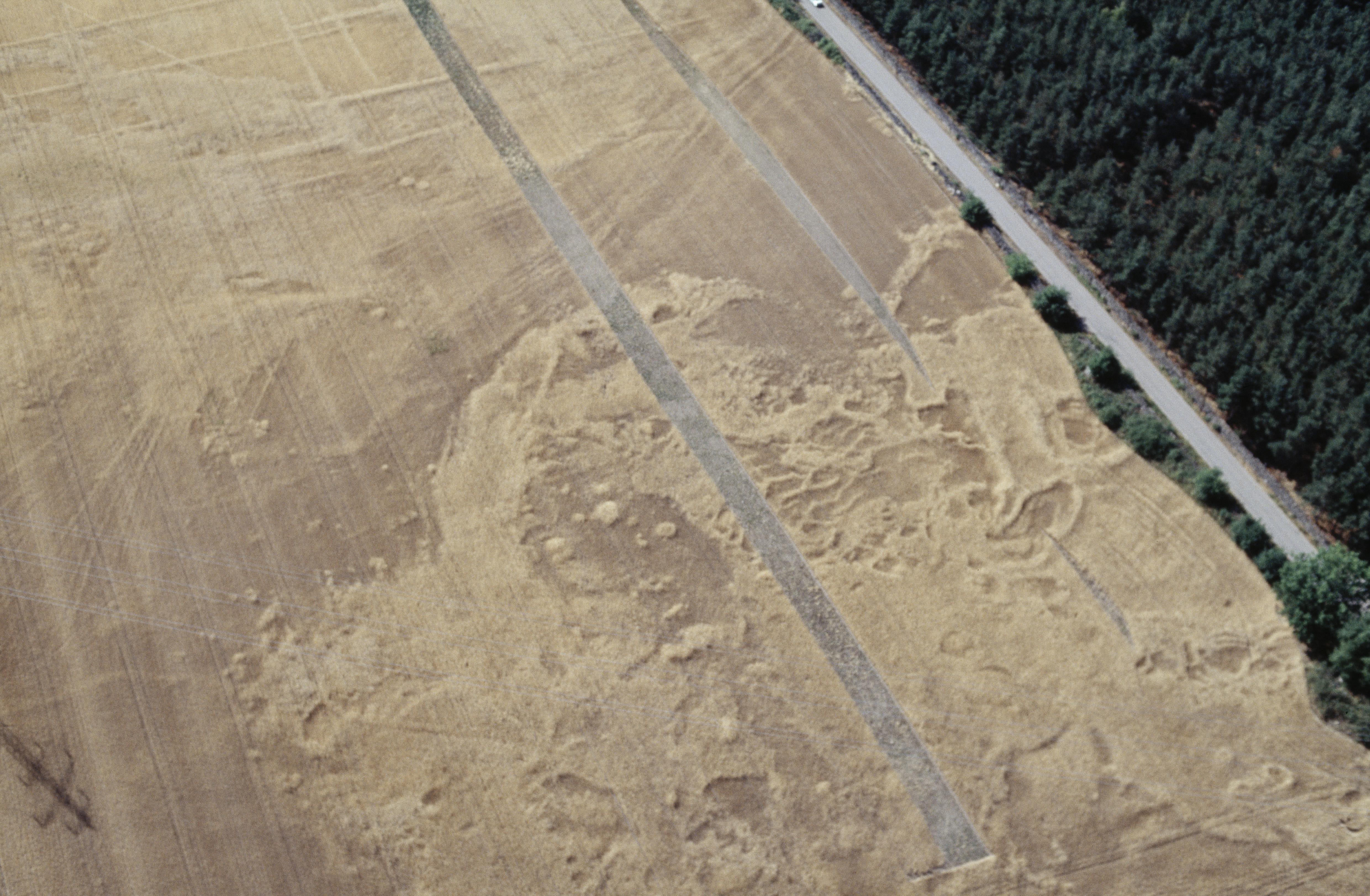 Beskrivning: Cropmarks i åker vid Kuleholms torp, näre röse RAÄnr Åby 52:1. Bilden är tagen mot (väderstreck): NV