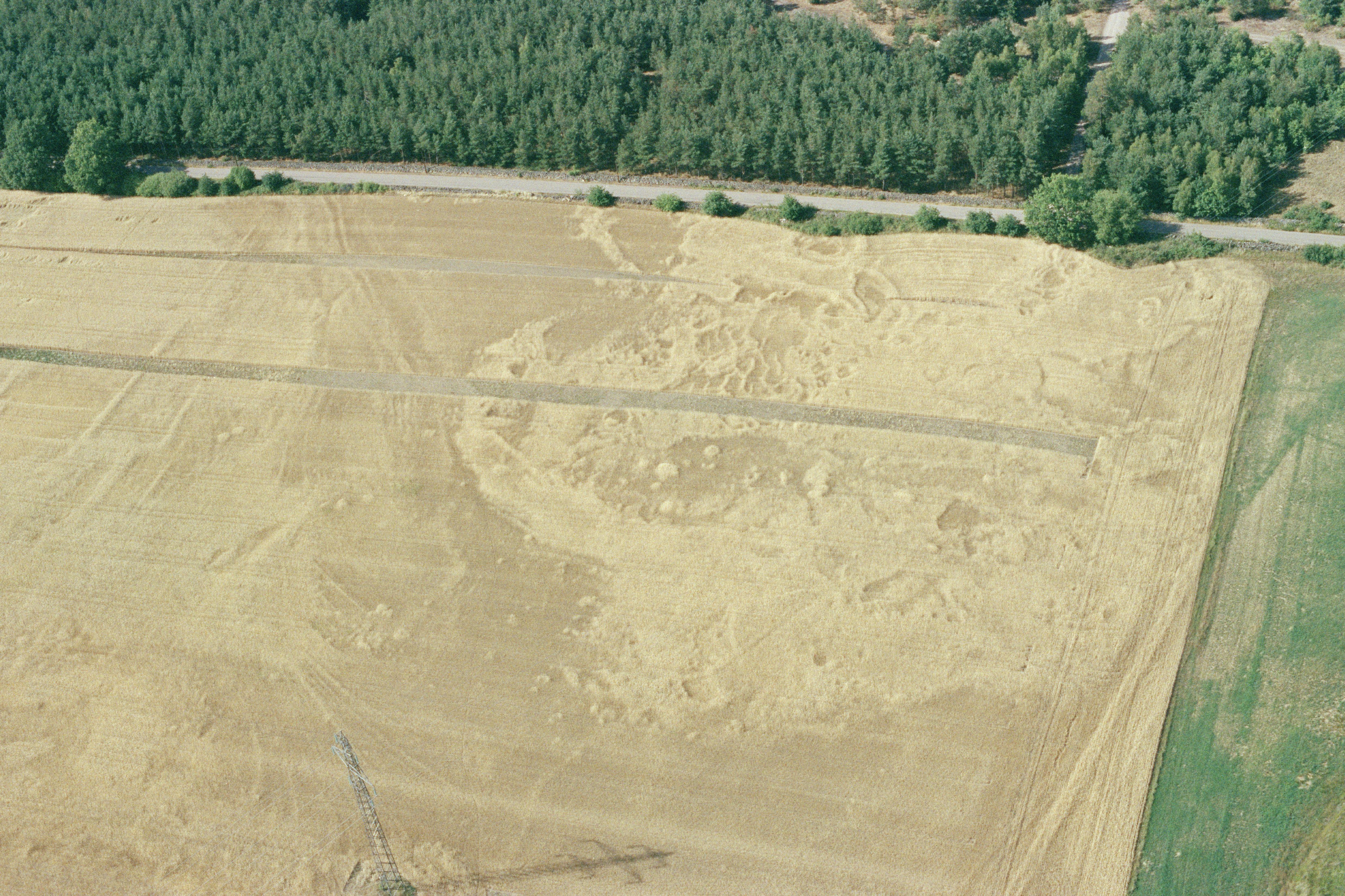 Beskrivning: Cropmarks i åker vid Kuleholms torp, näre röse RAÄnr Åby 52:1. Bilden är tagen mot (väderstreck): NNV