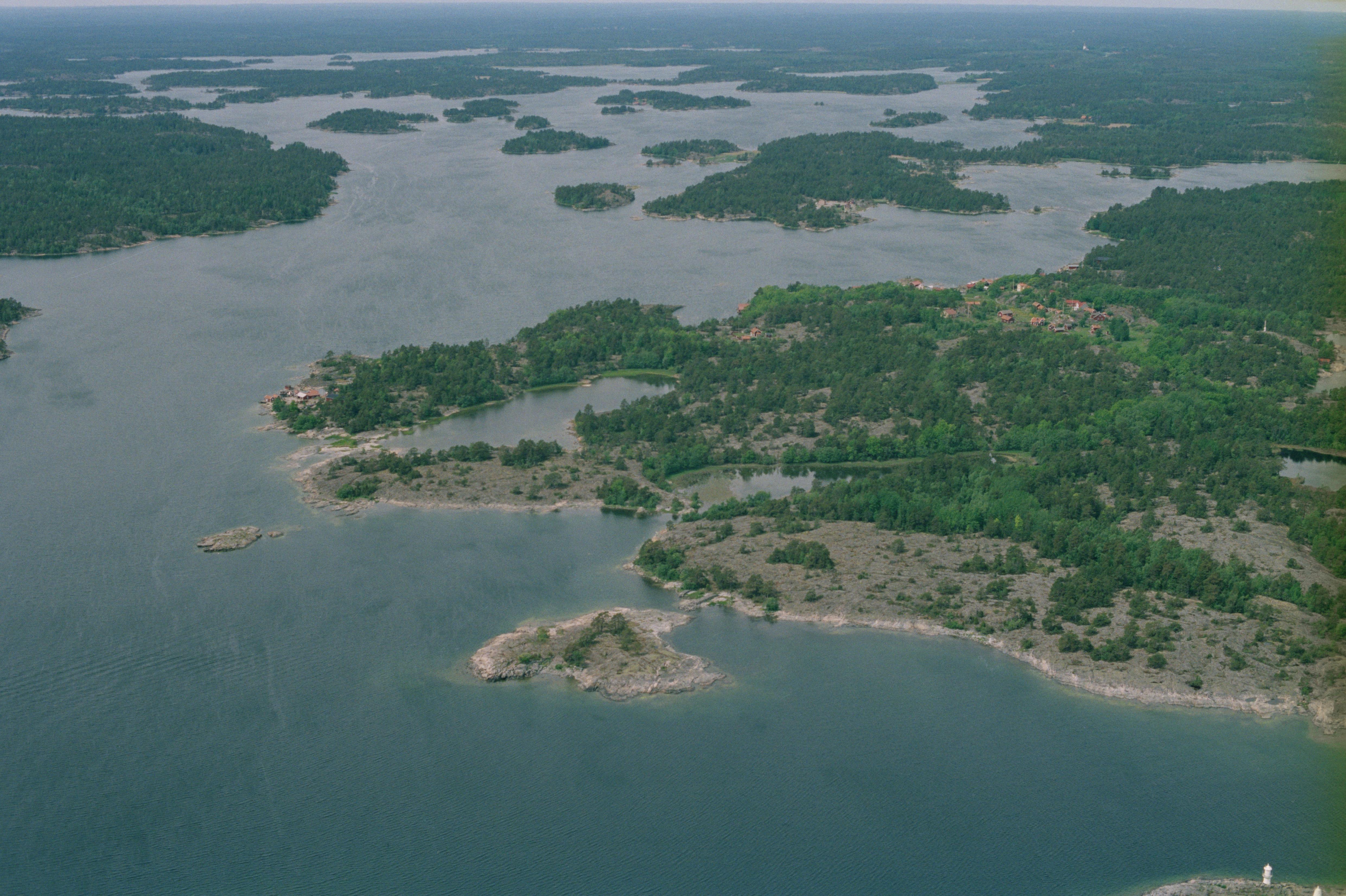 Beskrivning: Tjust skärgård. Rönnklabben holme (närmast), de två vikarna i bildens mitt är Kunghamnen (med begravningsplats RAÄnr Östra Ed 108:1) och Bredkroken på Torrös södra spets. Bilden är tagen mot (väderstreck): V