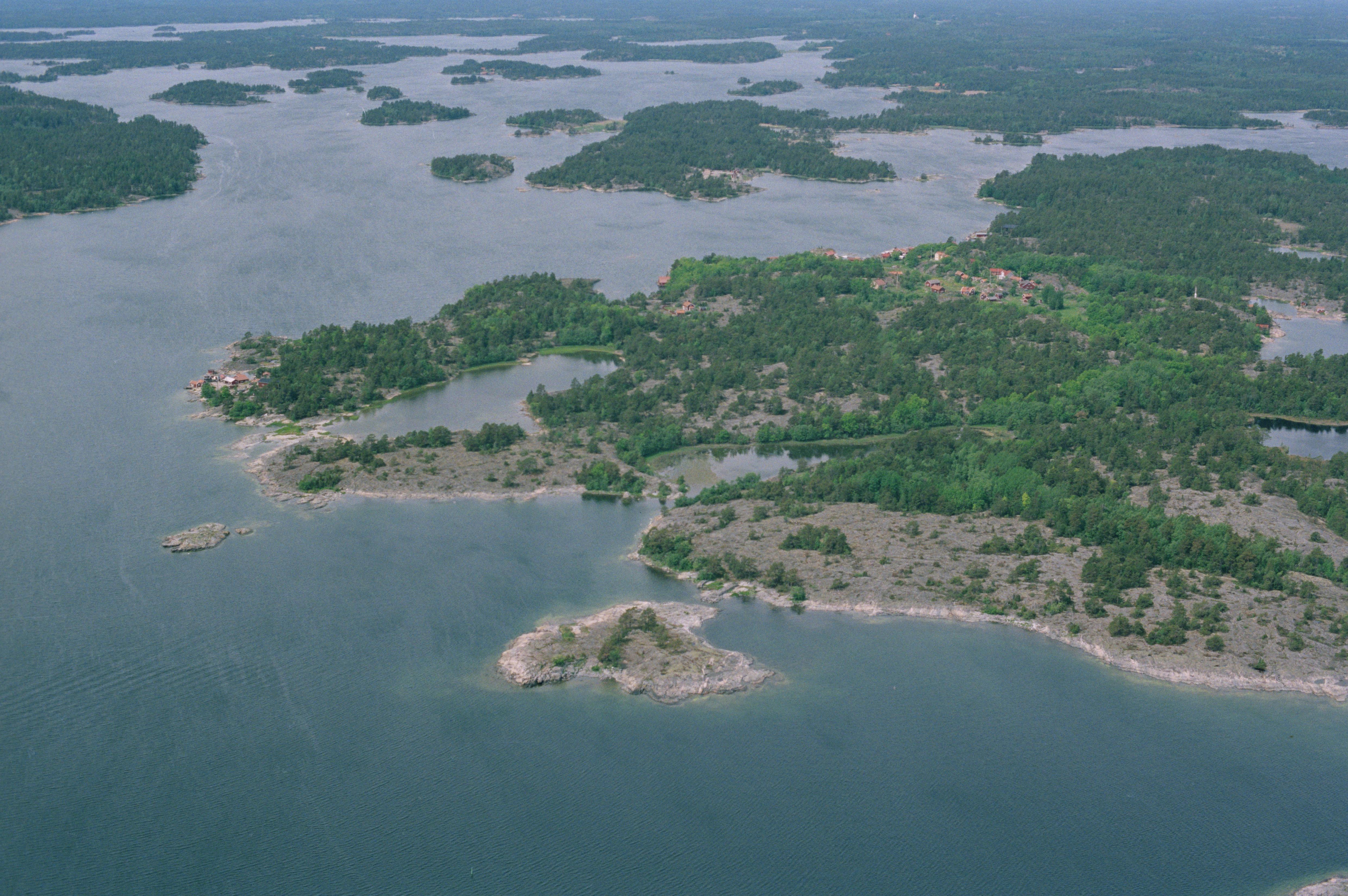 Beskrivning: Tjust skärgård. Rönnklabben holme (närmast), de två vikarna i bildens mitt är Kunghamnen (med begravningsplats RAÄnr Östra Ed 108:1) och Bredkroken på Torrös södra spets. Bilden är tagen mot (väderstreck): V
