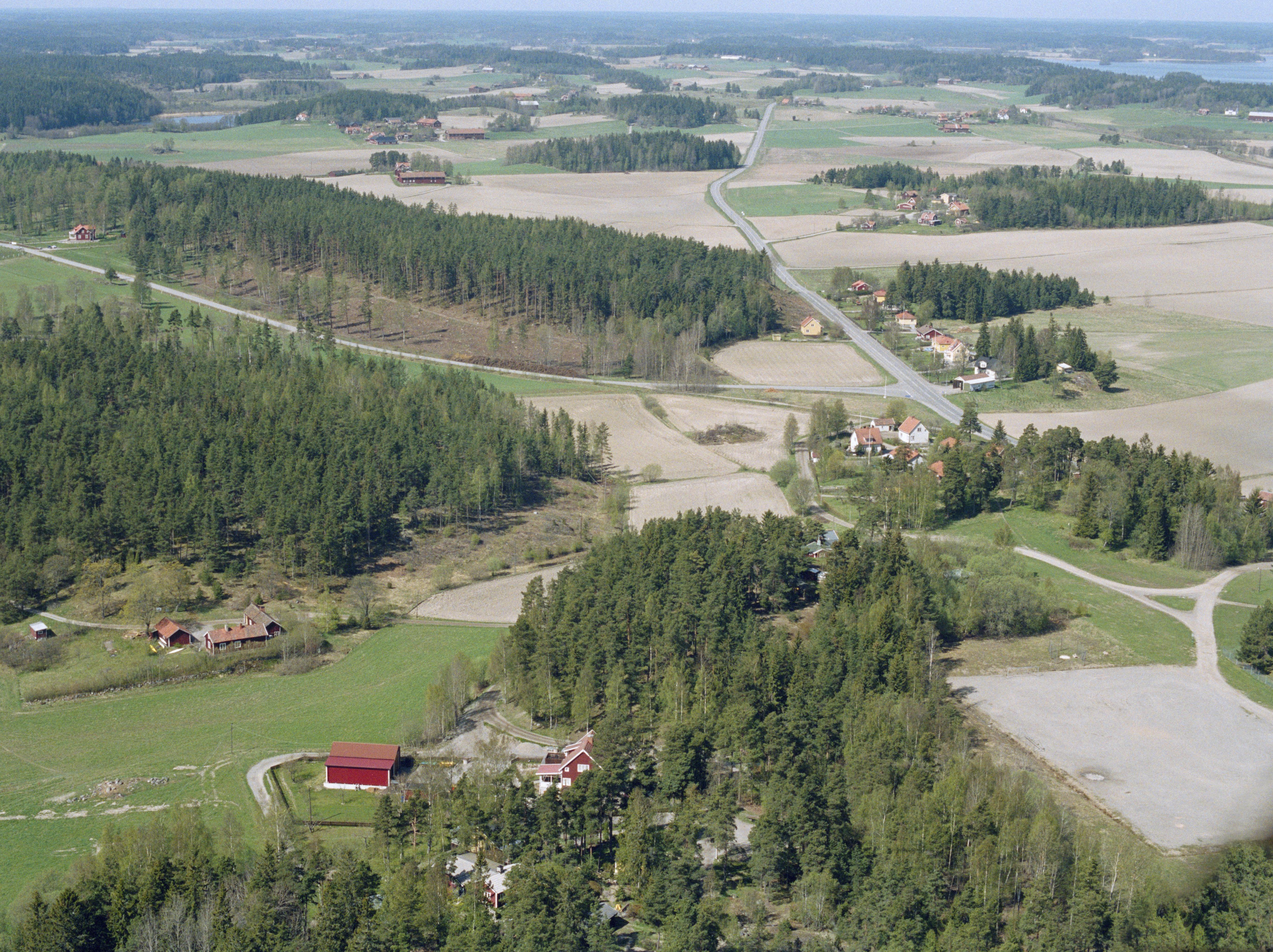 Beskrivning: Hållsta by. Vid bildens mitt färdväg RAÄnr Frustuna 245:1, gravfält Frustuna 69:1 m.fl. Bilden är tagen mot (väderstreck): NV