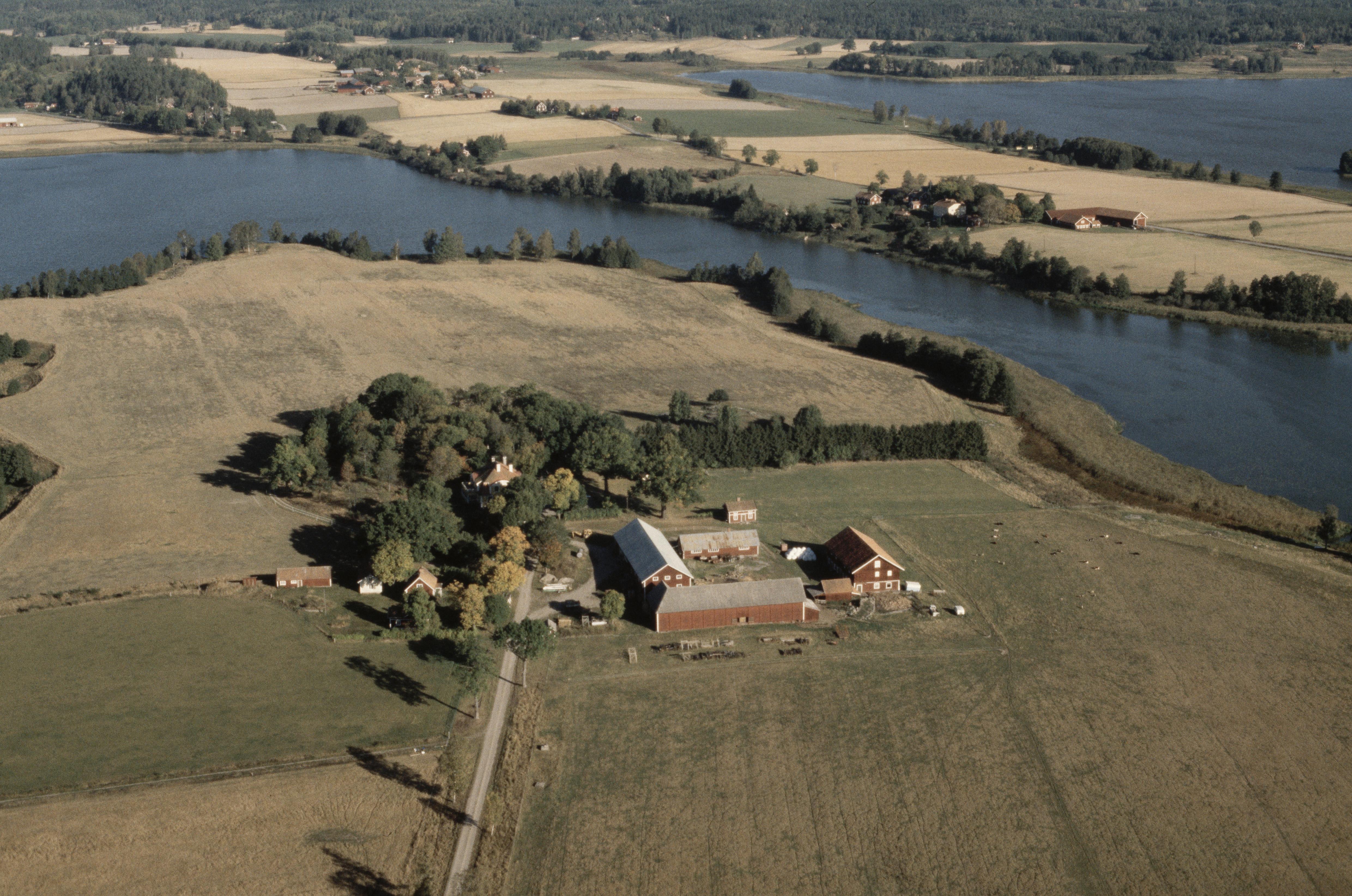 Beskrivning: Rynäs gård på en udde i Avlasjön. Vid gården fyndplats (stenyxa) RAÄnr Gåsinge-Dillnäs 432:1. Bilden är tagen mot (väderstreck): NNO