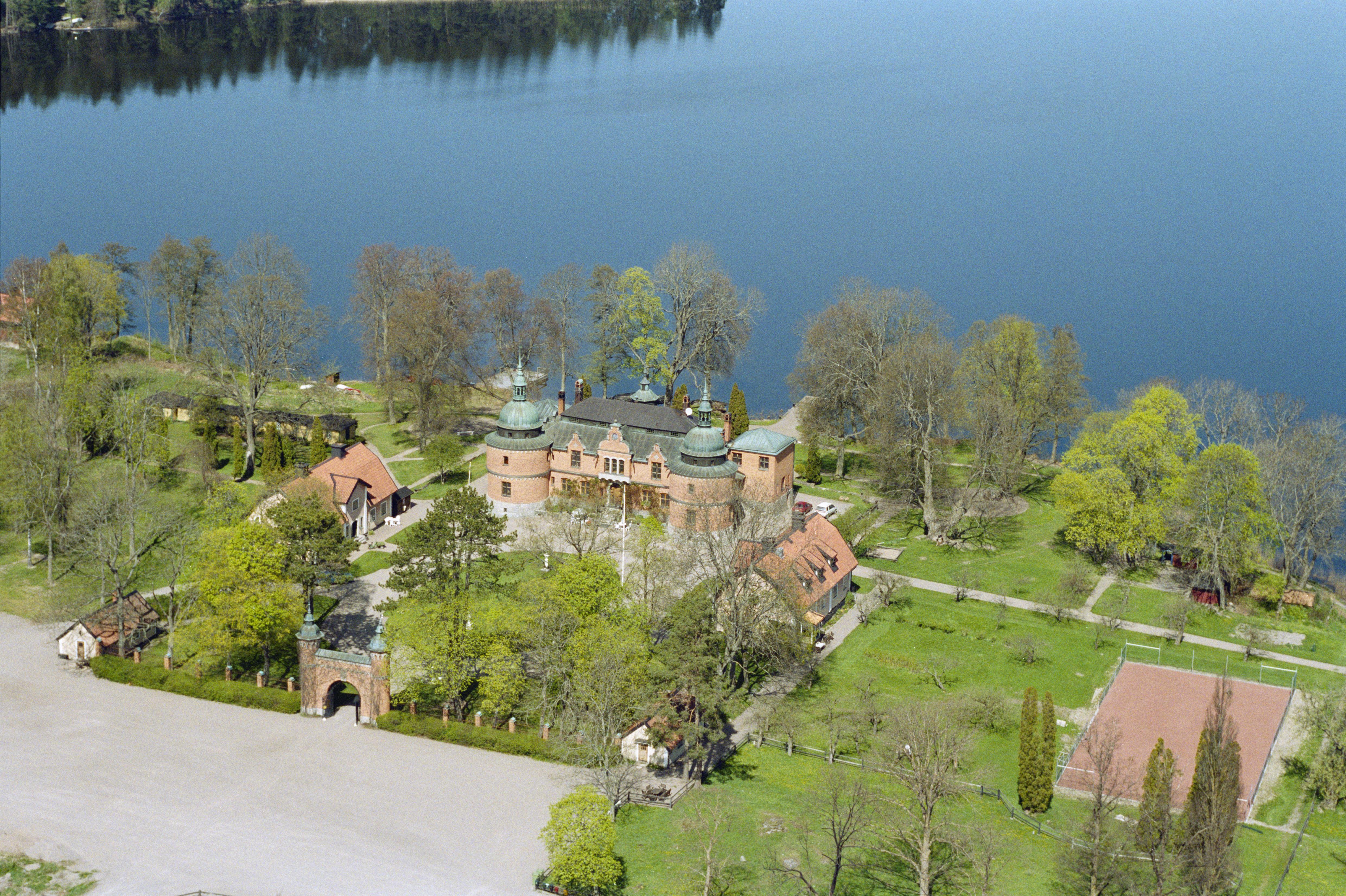 Beskrivning: Rockelsta slott / herrgård (skrivs även Rockelstad) RAÄnr Helgesta 119:1, vid sjön Båven. Bilden är tagen mot (väderstreck): NV