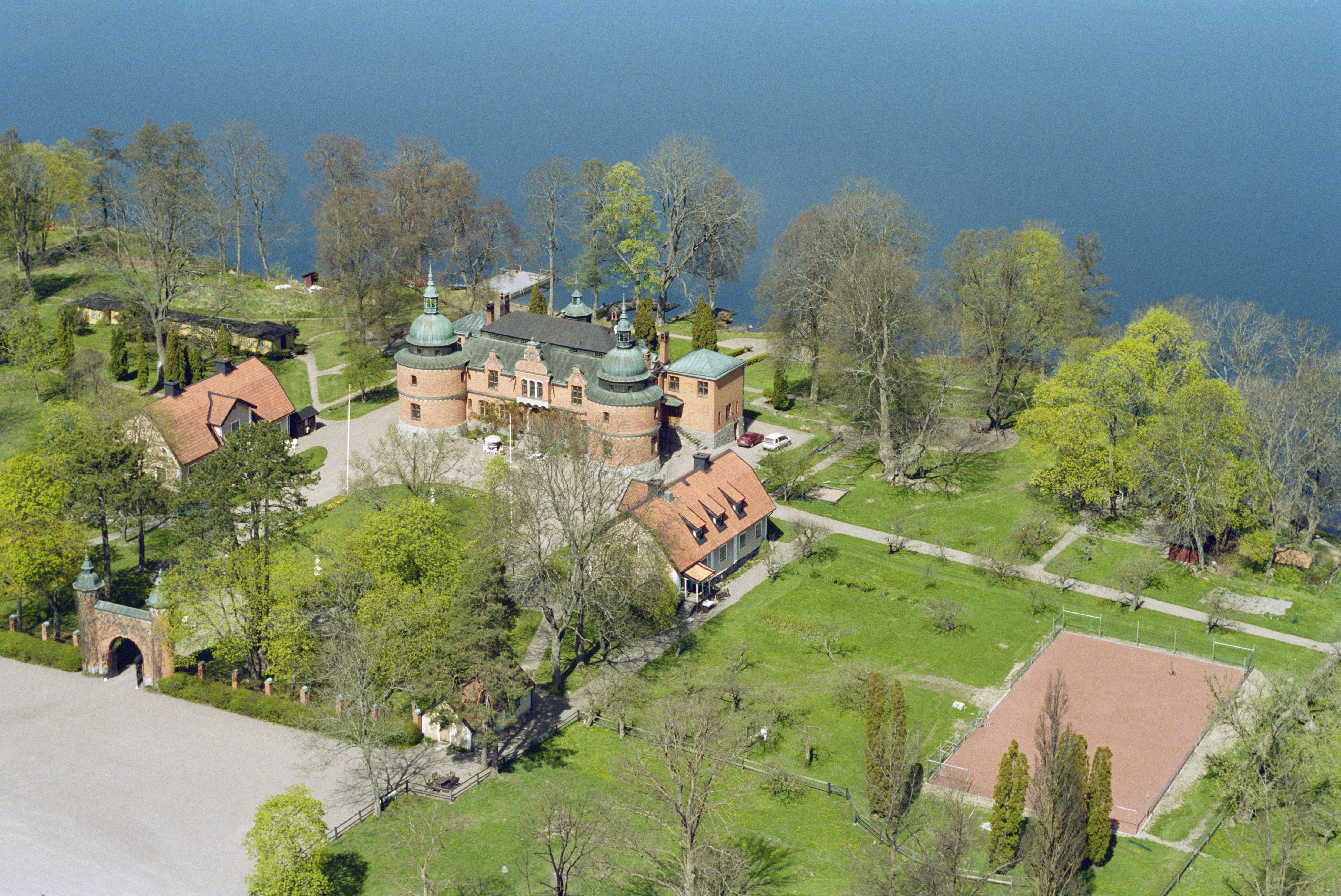 Beskrivning: Rockelsta slott / herrgård (skrivs även Rockelstad) RAÄnr Helgesta 119:1, vid sjön Båven. Bilden är tagen mot (väderstreck): NV